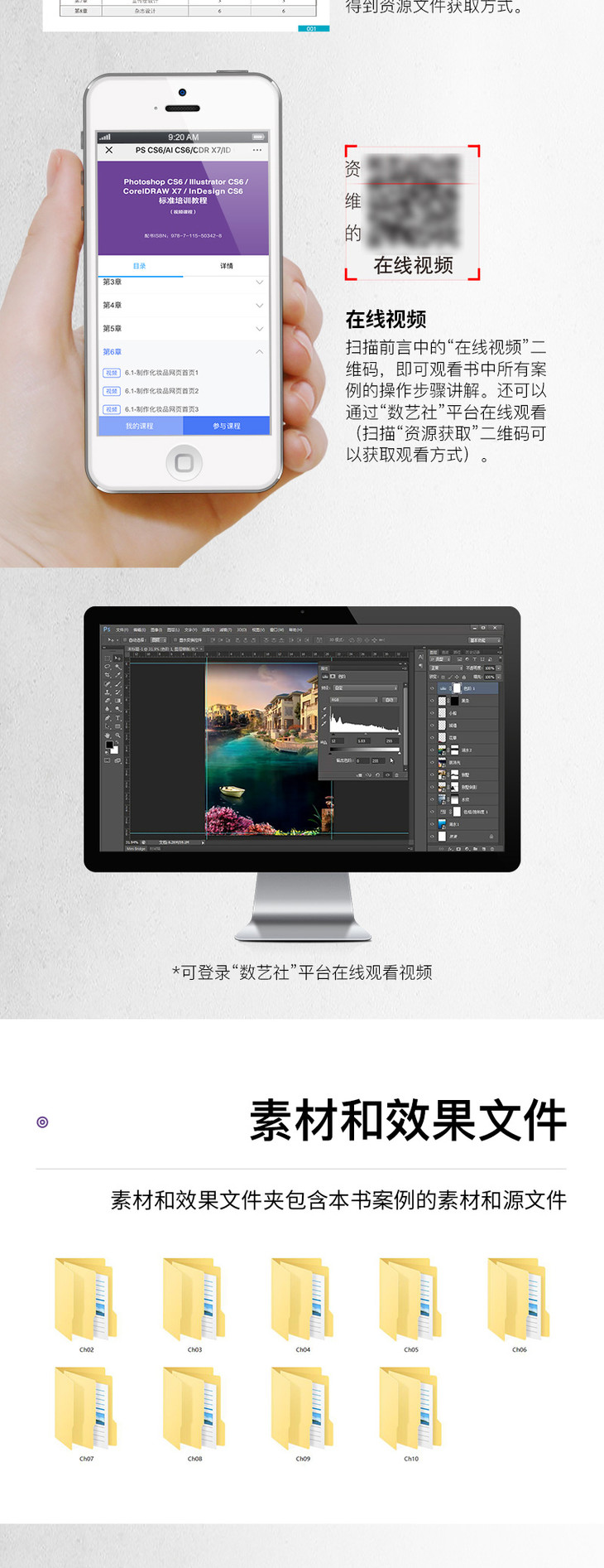 《Photoshop CS6/Illustrator CS6/CorelDRAW X7/InDesign CS6标准培训教程》附带学习资源,内容包括书中所有案例的素材及效果文件,读者可通过在线方式获取这些资源,具体方法请参看本书前言。