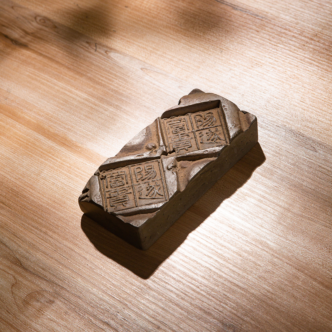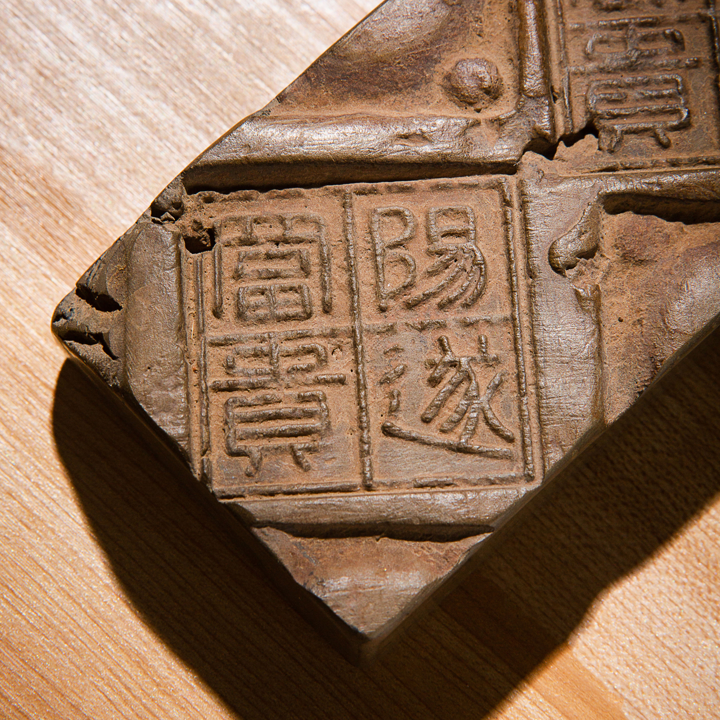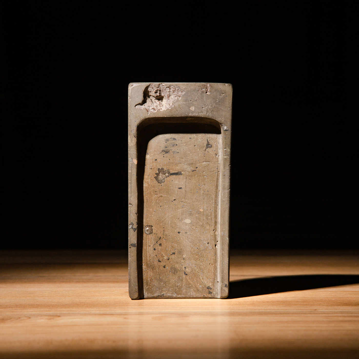 “阳遂富贵”古砖制砚。砖上铭文精美古朴,字口清晰。砚膛胎质细腻,下发墨极佳。此砖极稀有,用此砖制砚极为珍贵。