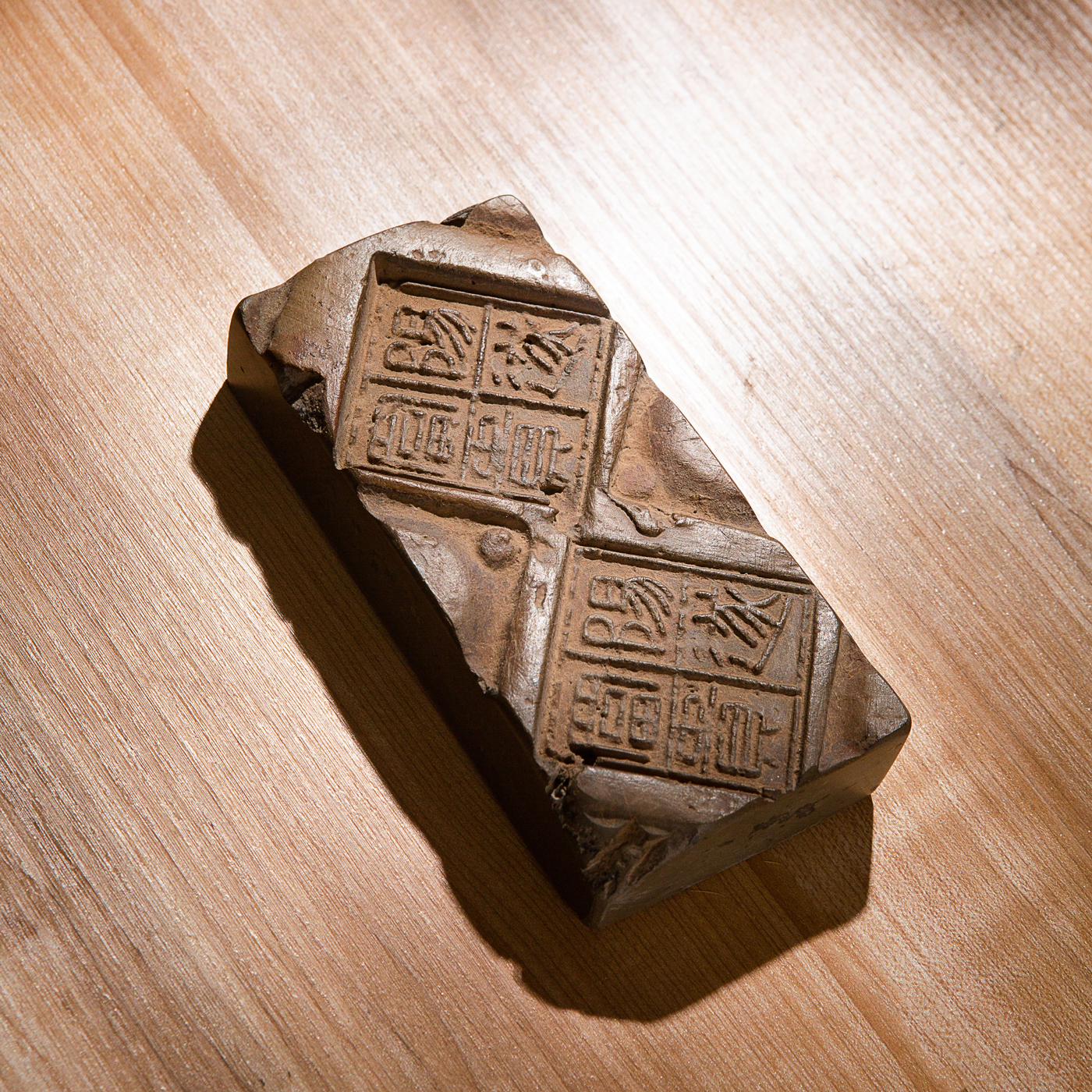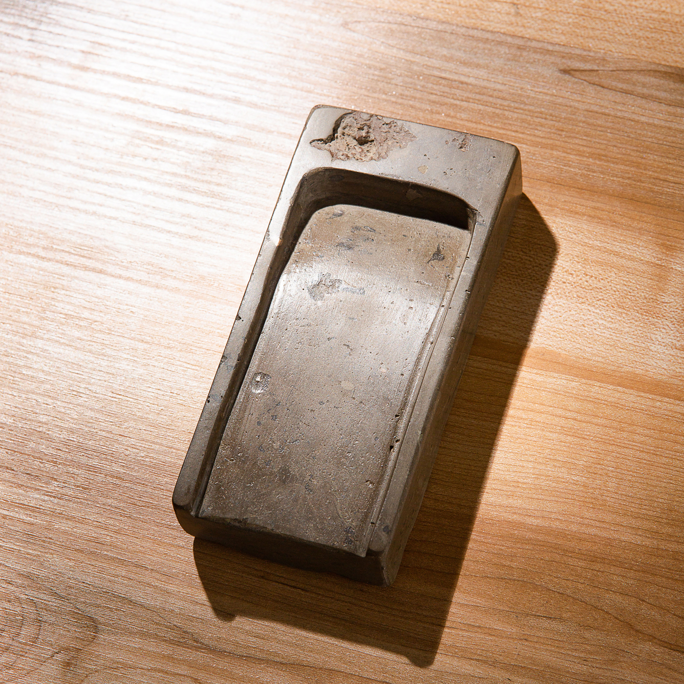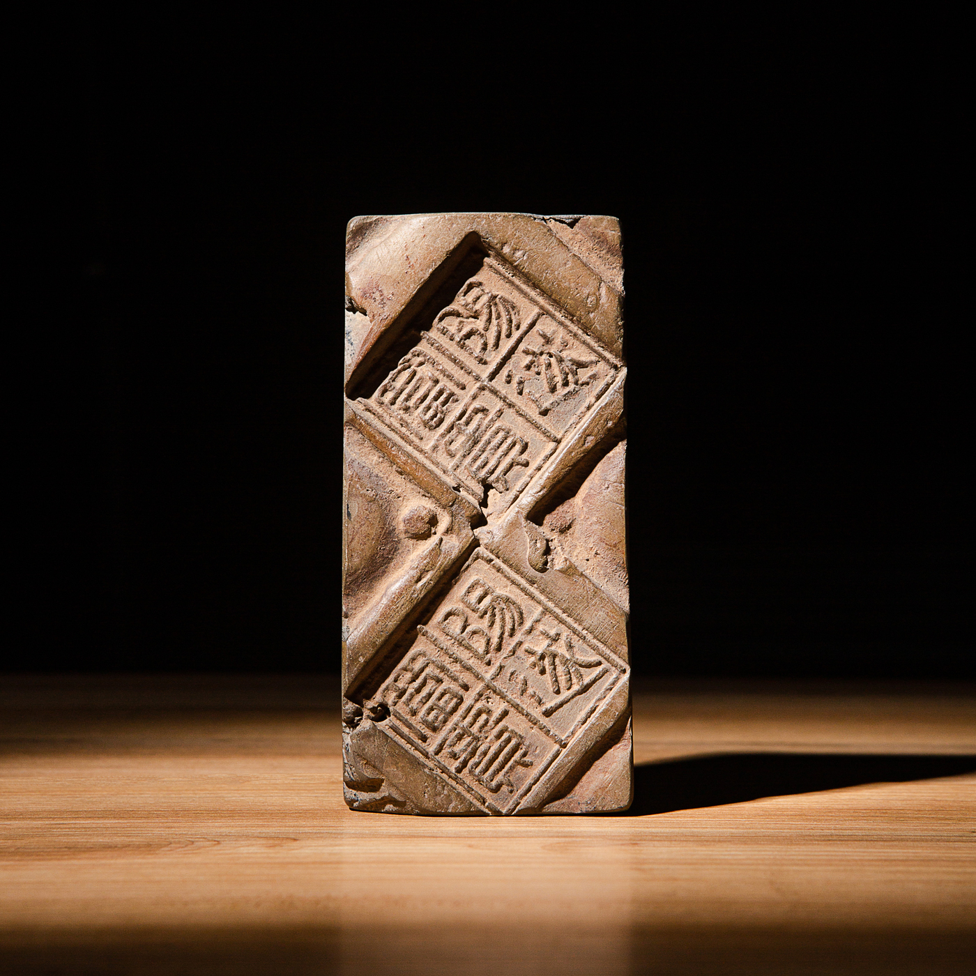 “阳遂富贵”古砖制砚。砖上铭文精美古朴,字口清晰。砚膛胎质细腻,下发墨极佳。此砖极稀有,用此砖制砚极为珍贵。