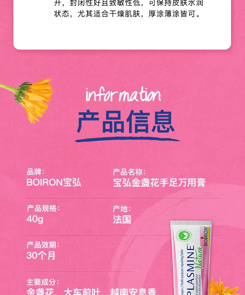 4楼Eubelle欧蓓 Boiron宝弘金盏花修护舒缓润护万用膏40g 鼻唇脚后跟防干裂皲裂手足膏 吊牌价:65元 活动价:59元