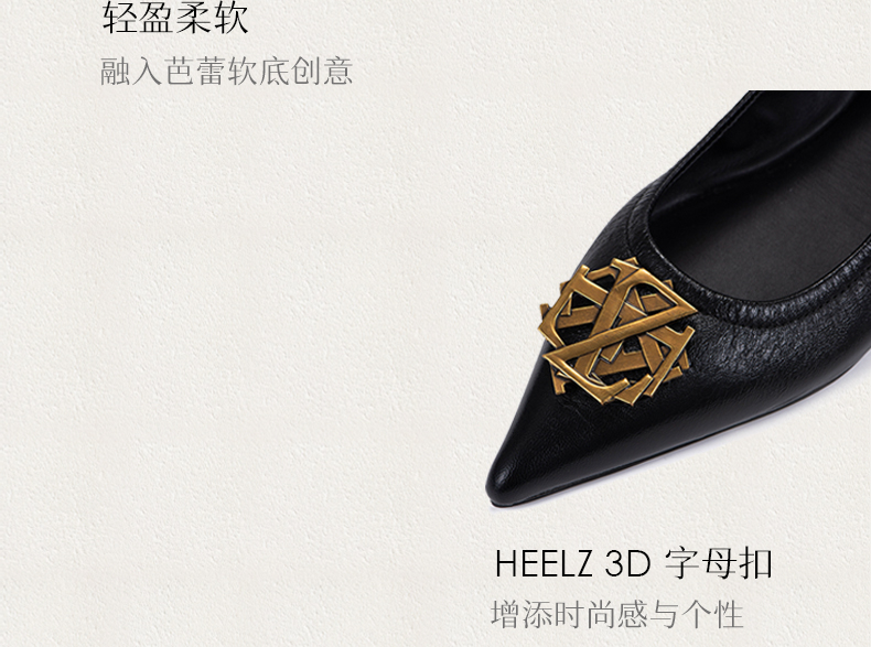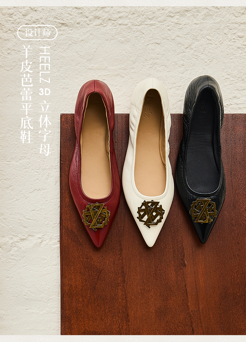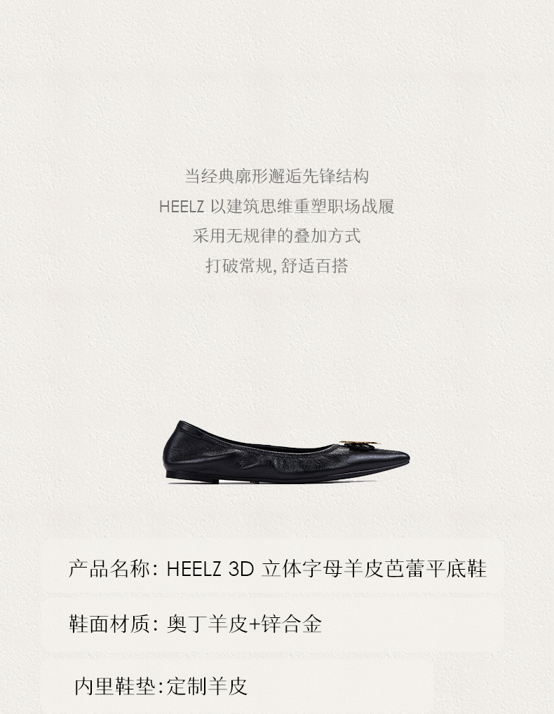 heelz设计师手工鞋履 |3D立体字母平底芭蕾羊皮平底鞋 0.5公分