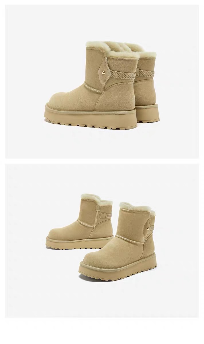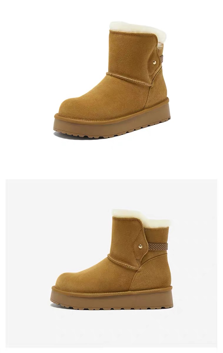 【云粉节】【拔佳】BF楼Bata雪地靴女2025冬款牛剖皮保暖厚底百搭时尚短靴AUC50DD5 吊牌价899 活动价629