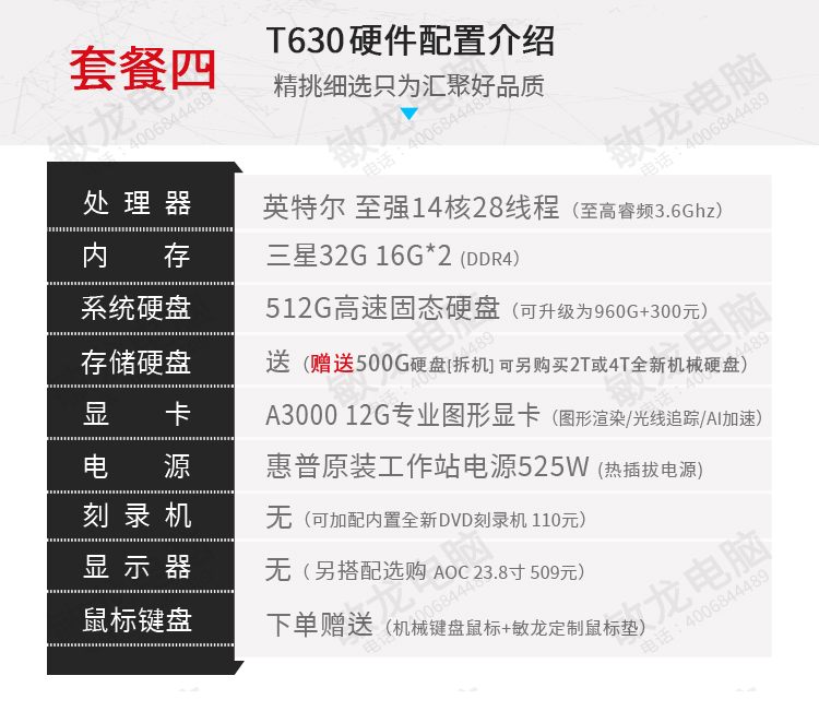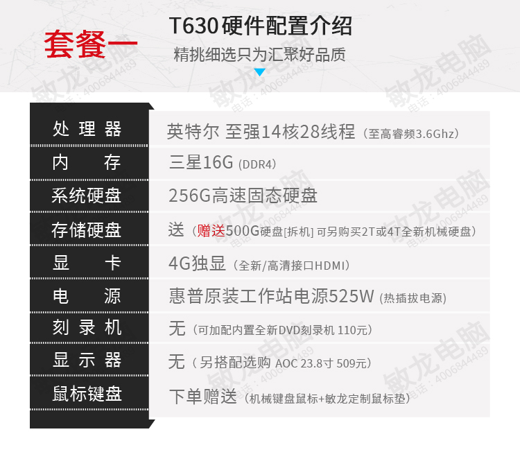【敏龙电脑】T630 图形工作站/超高性价比/14核28线程(产品成色:95新左右)