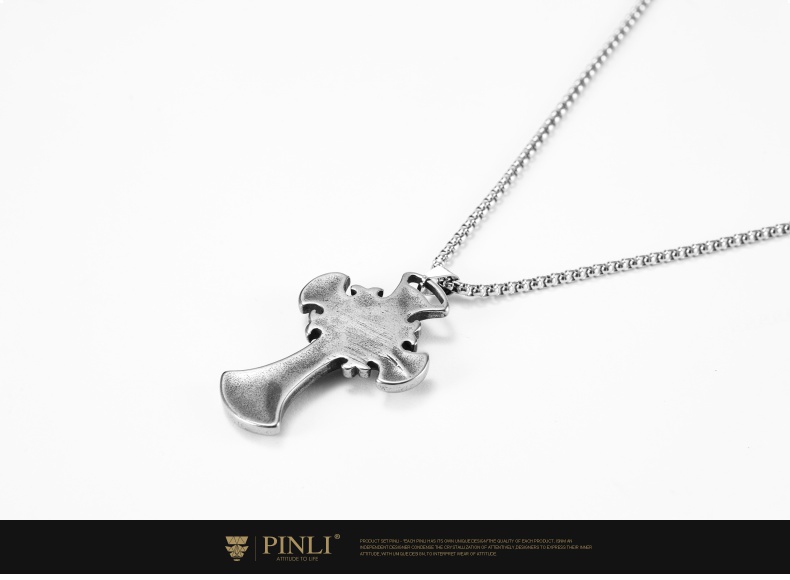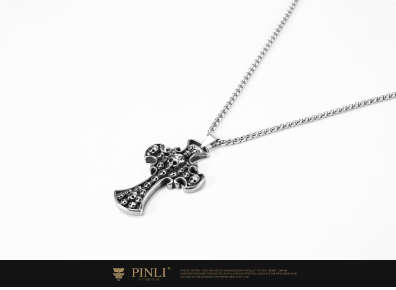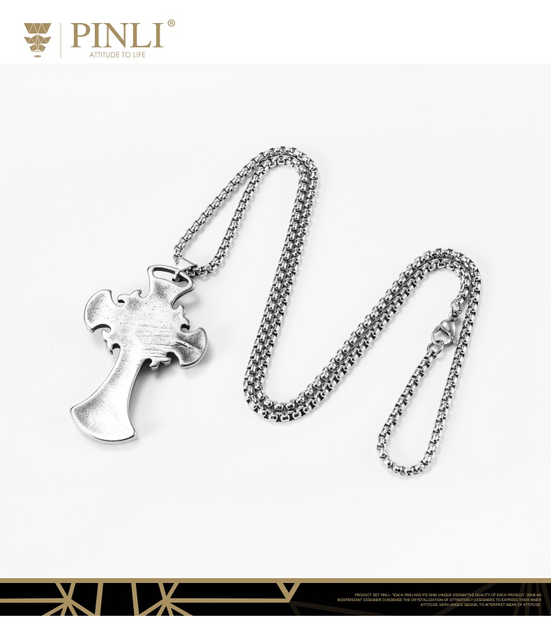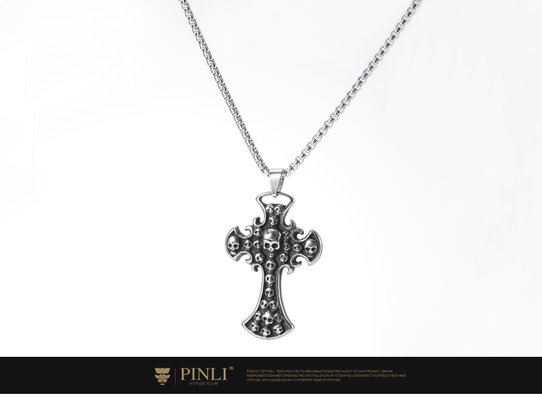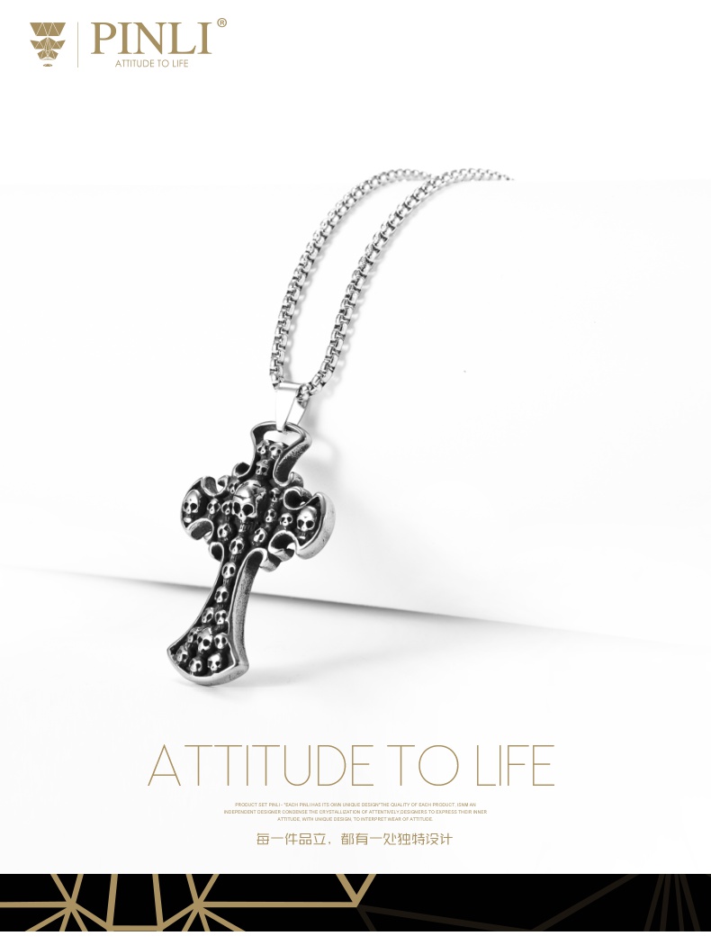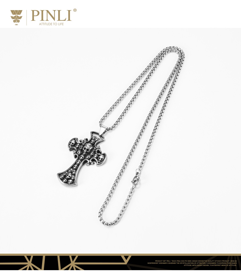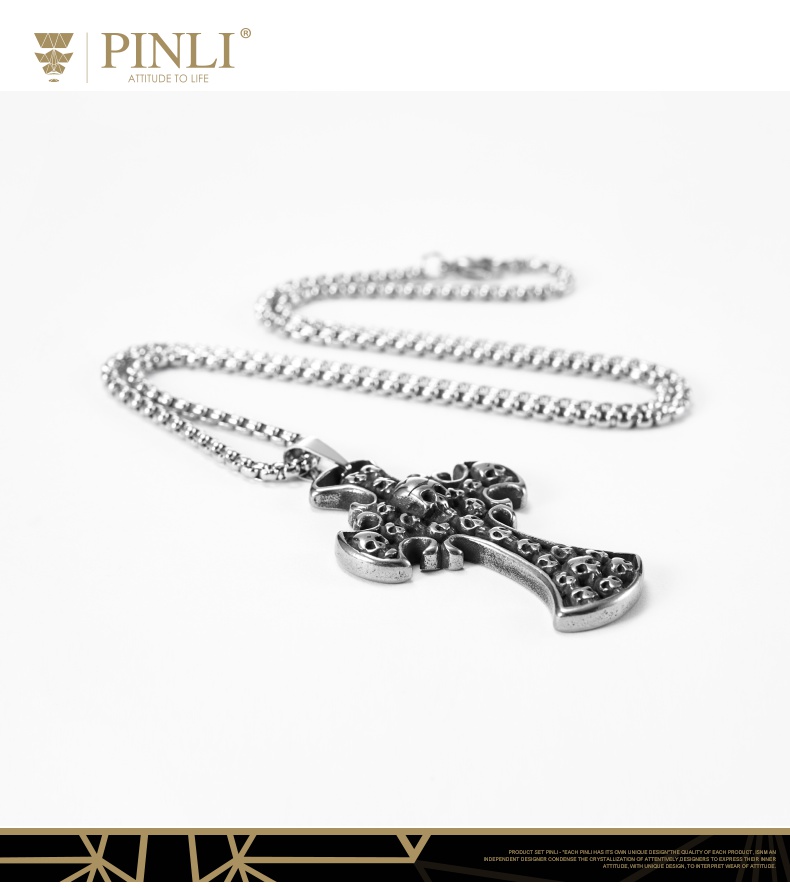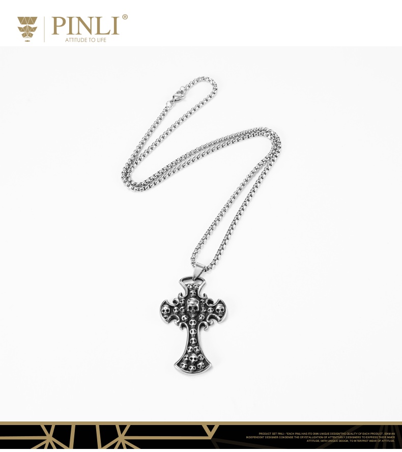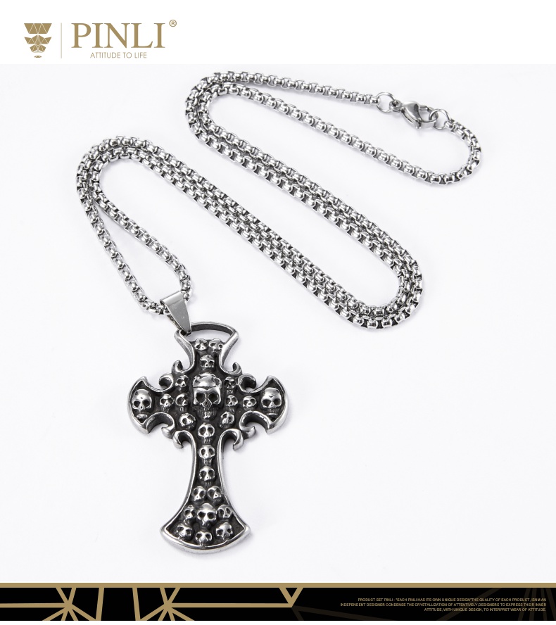 PINLI品立夏季新款配饰骷髅吊坠项链饰品男不锈钢首饰D203128966
