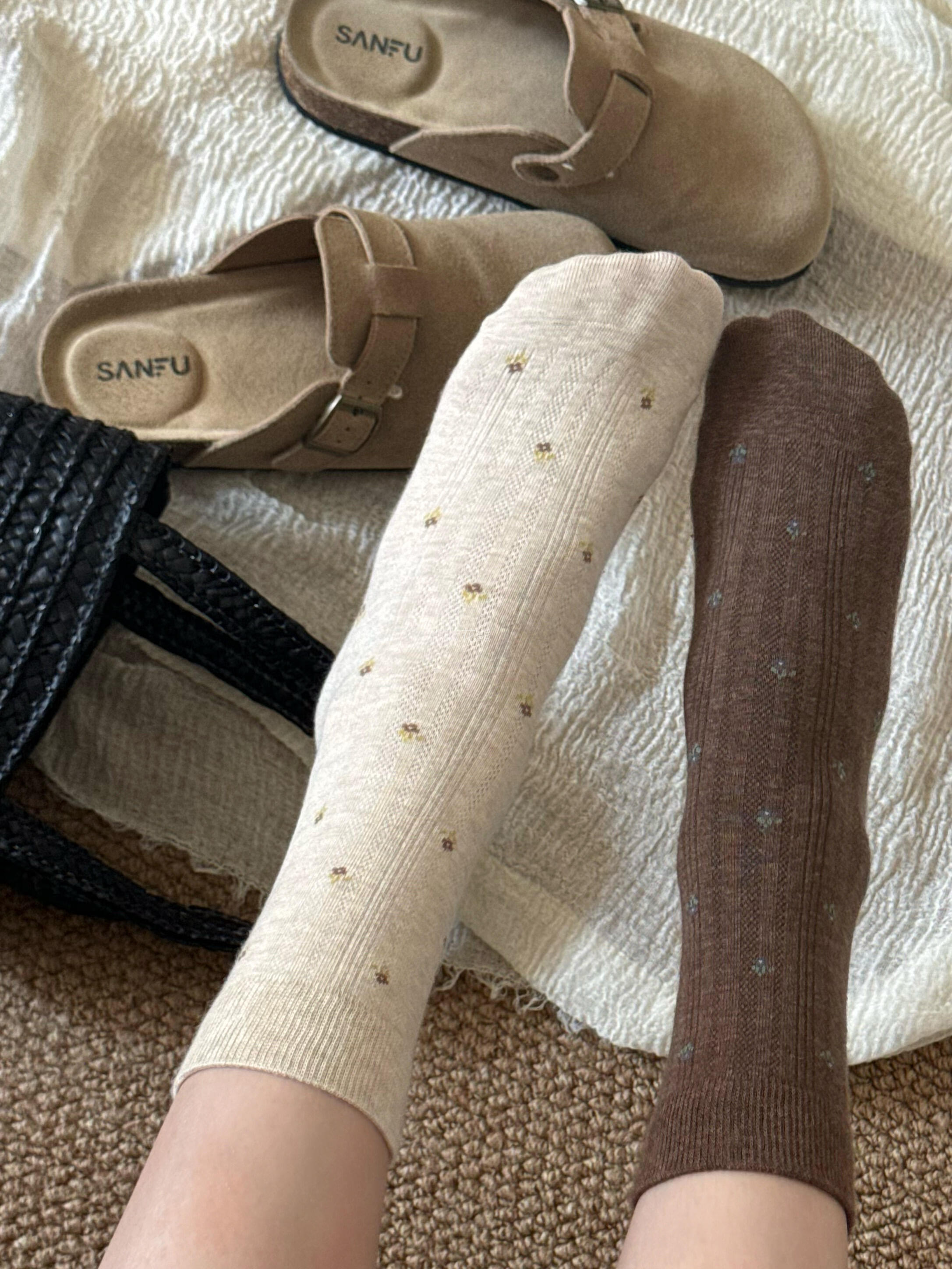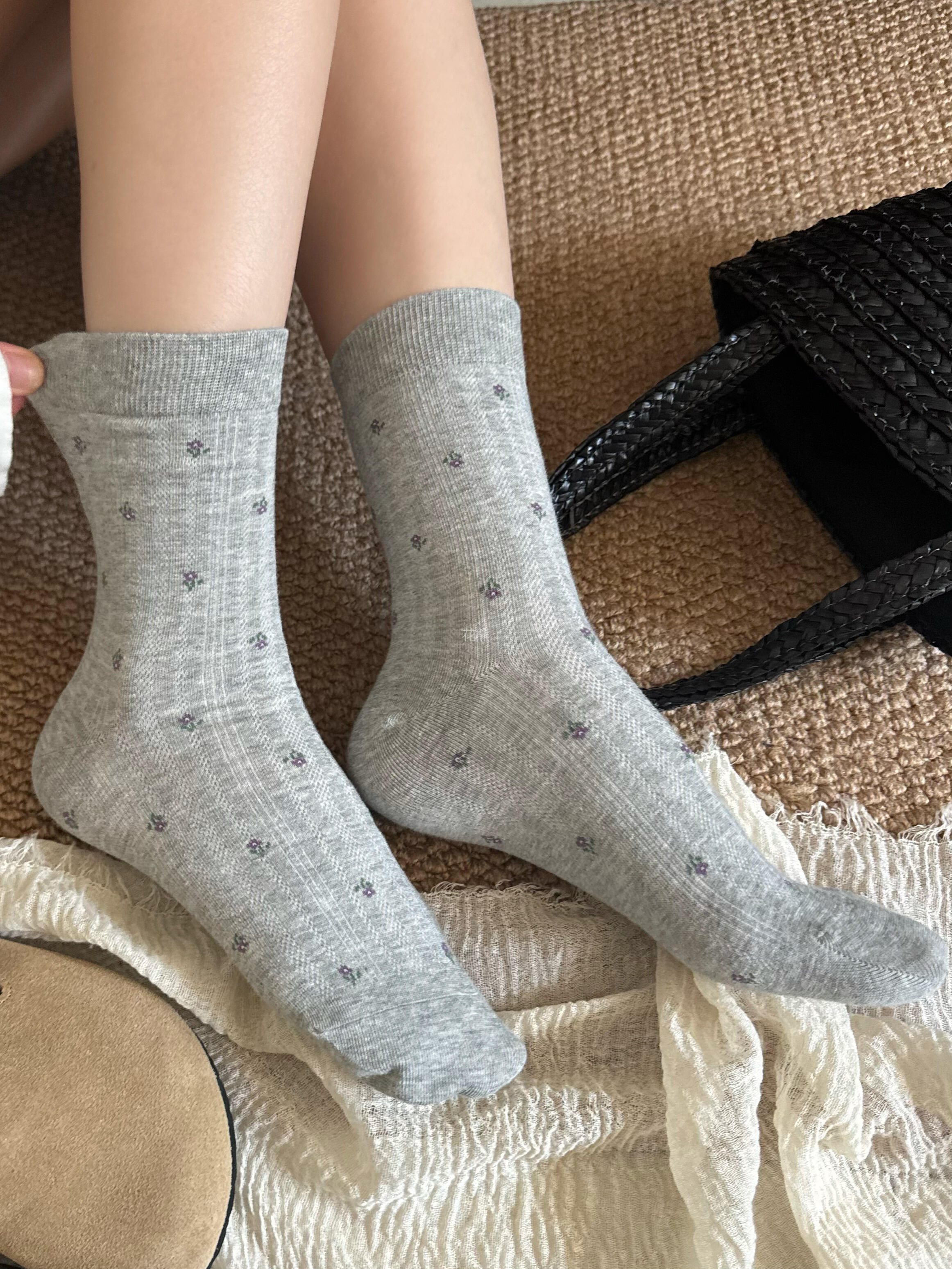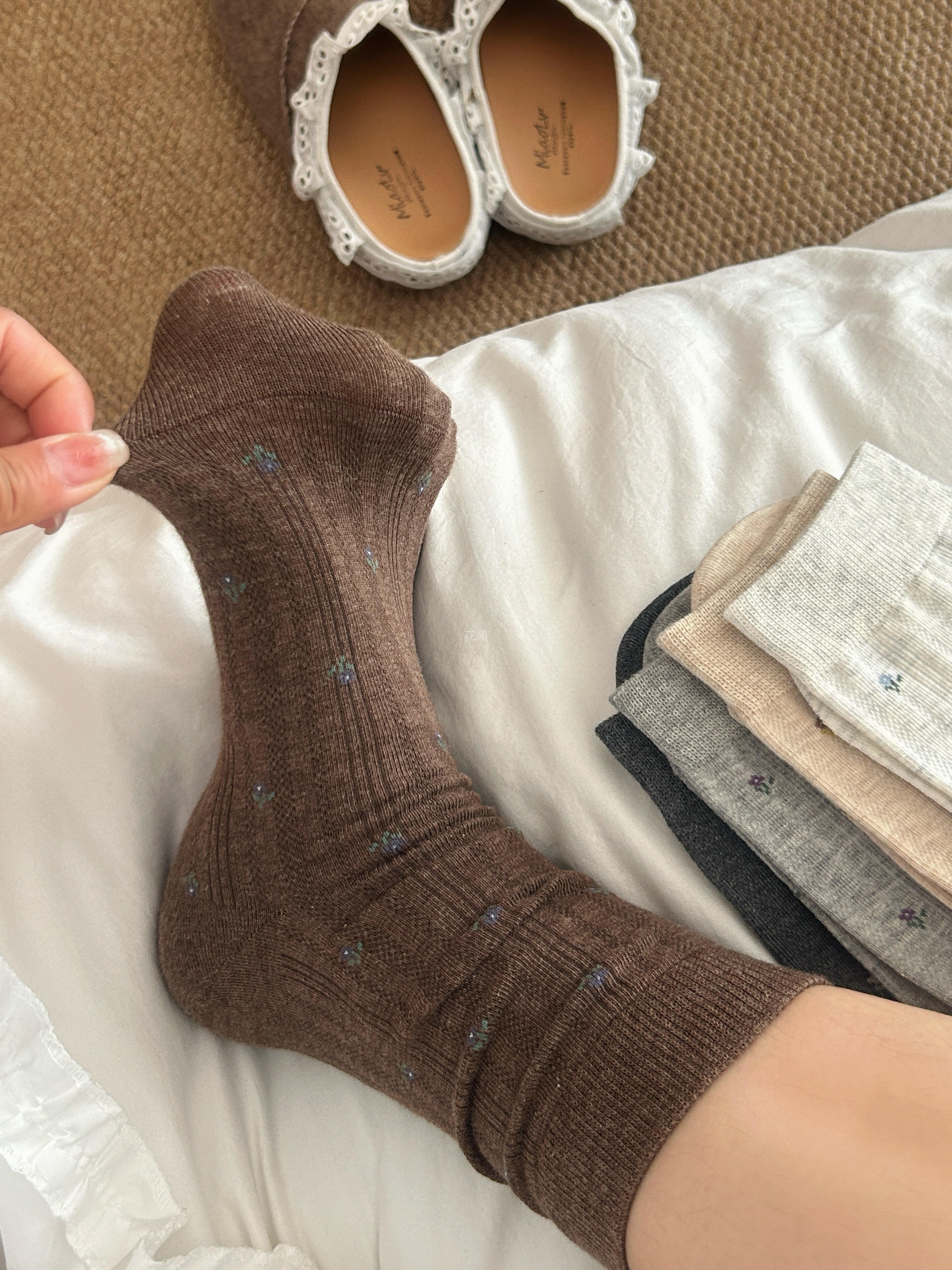 【秋日美拉德碎花袜子】有点韩的小碎花堆堆wa~一脚踏入秋天!一整个复古少女松弛感妥妥拿捏!miu系竖纹坑条十碎花,巨清透姐妹们超piu亮哒袜子,上脚巨软糯舒适~