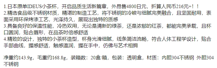 米马姐姐推荐!冬葵自留日本原单IDEUS保冷也保温的小茶杯 食品级304不锈钢内胆两个装