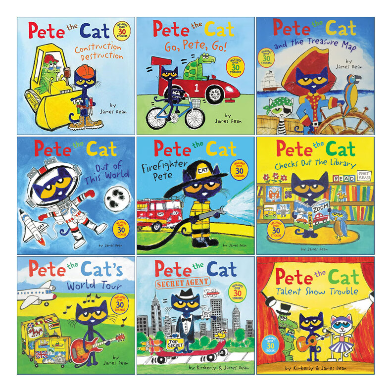 书名:Pete the Cat 皮特猫带贴纸绘本9册