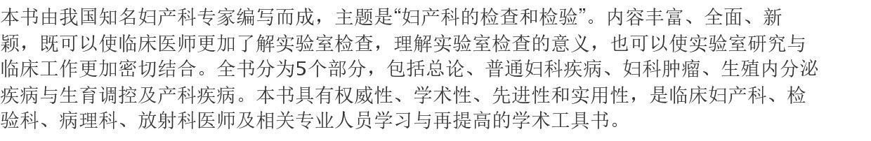 书名:2025妇产科学新进展——妇产科的检查和检验