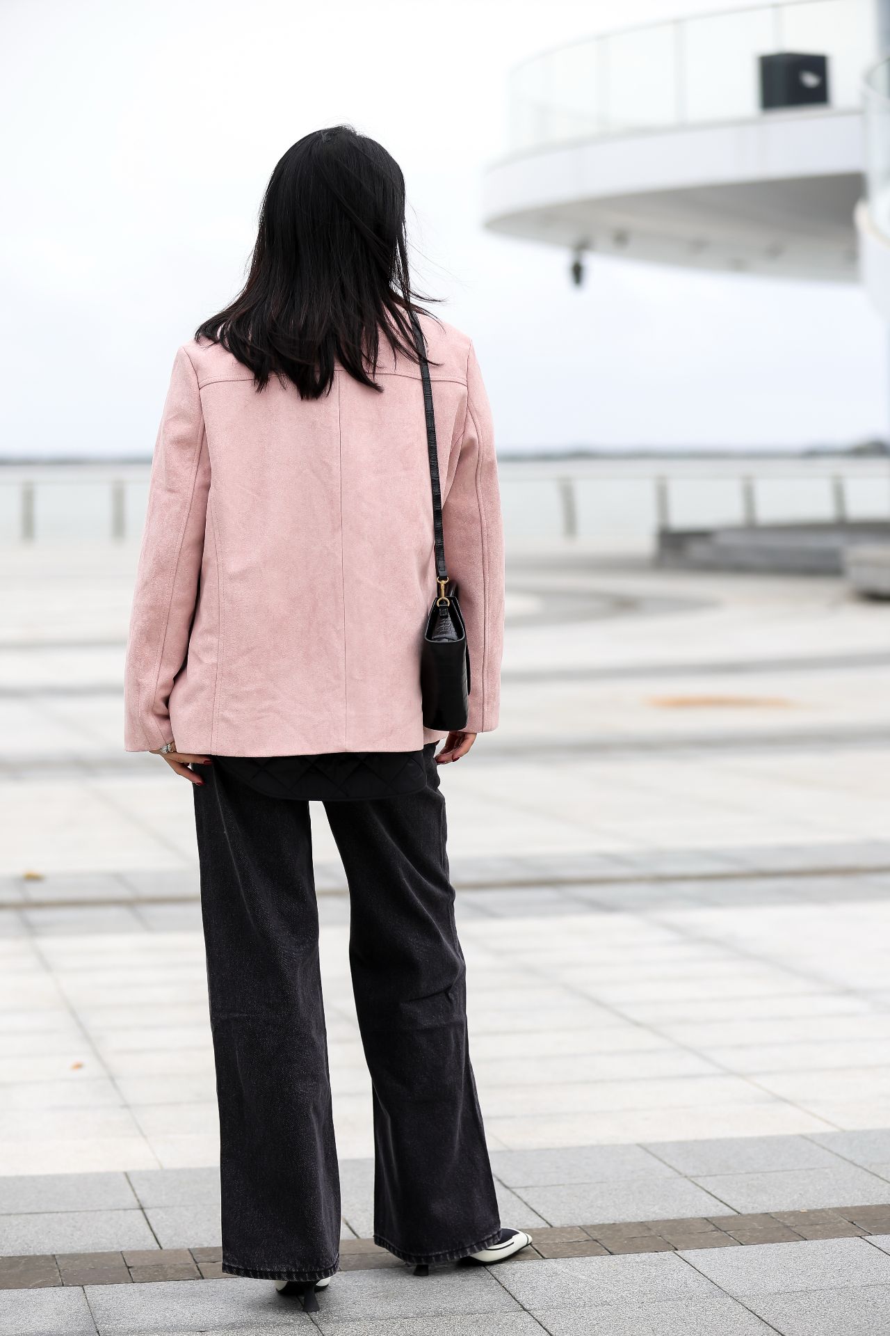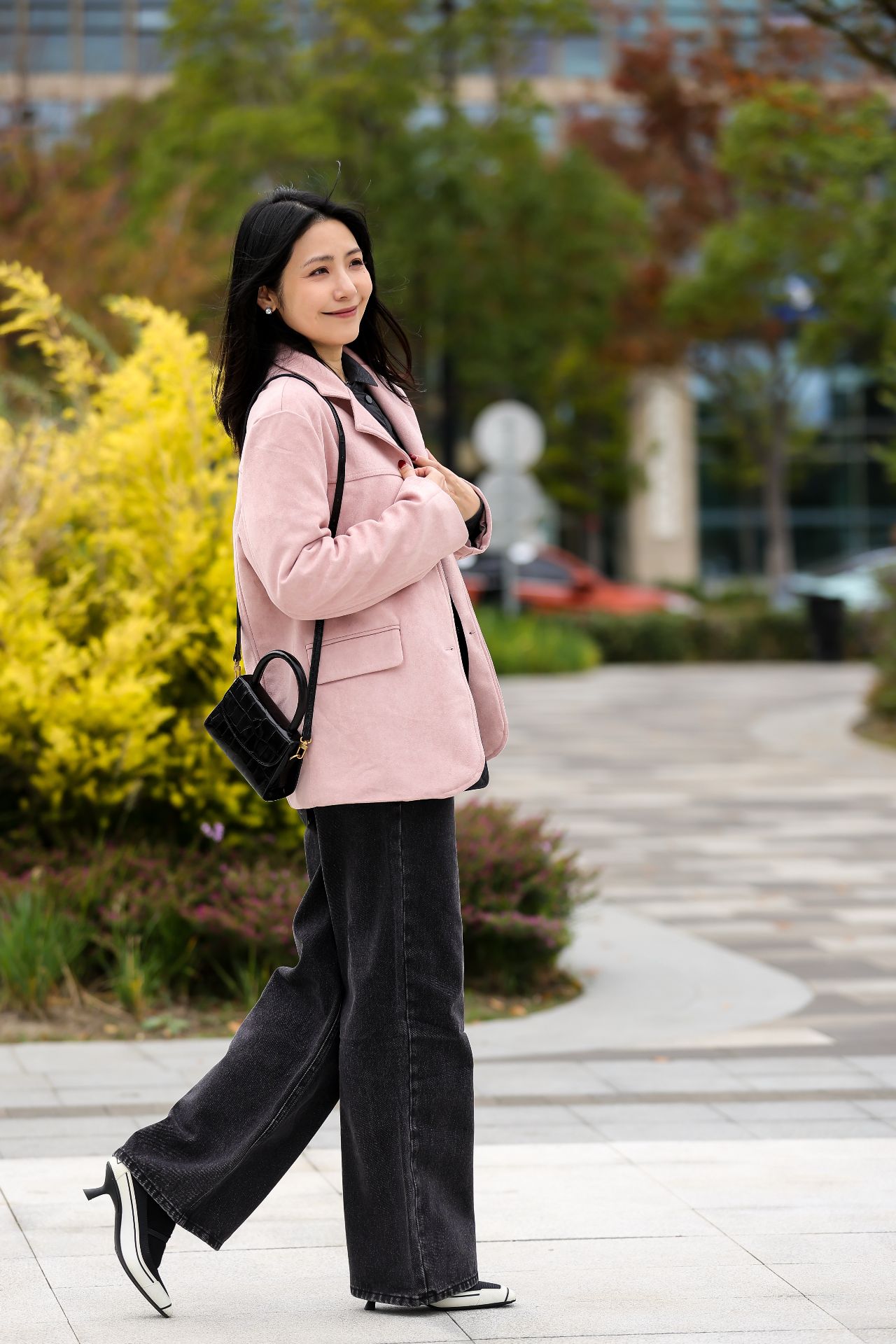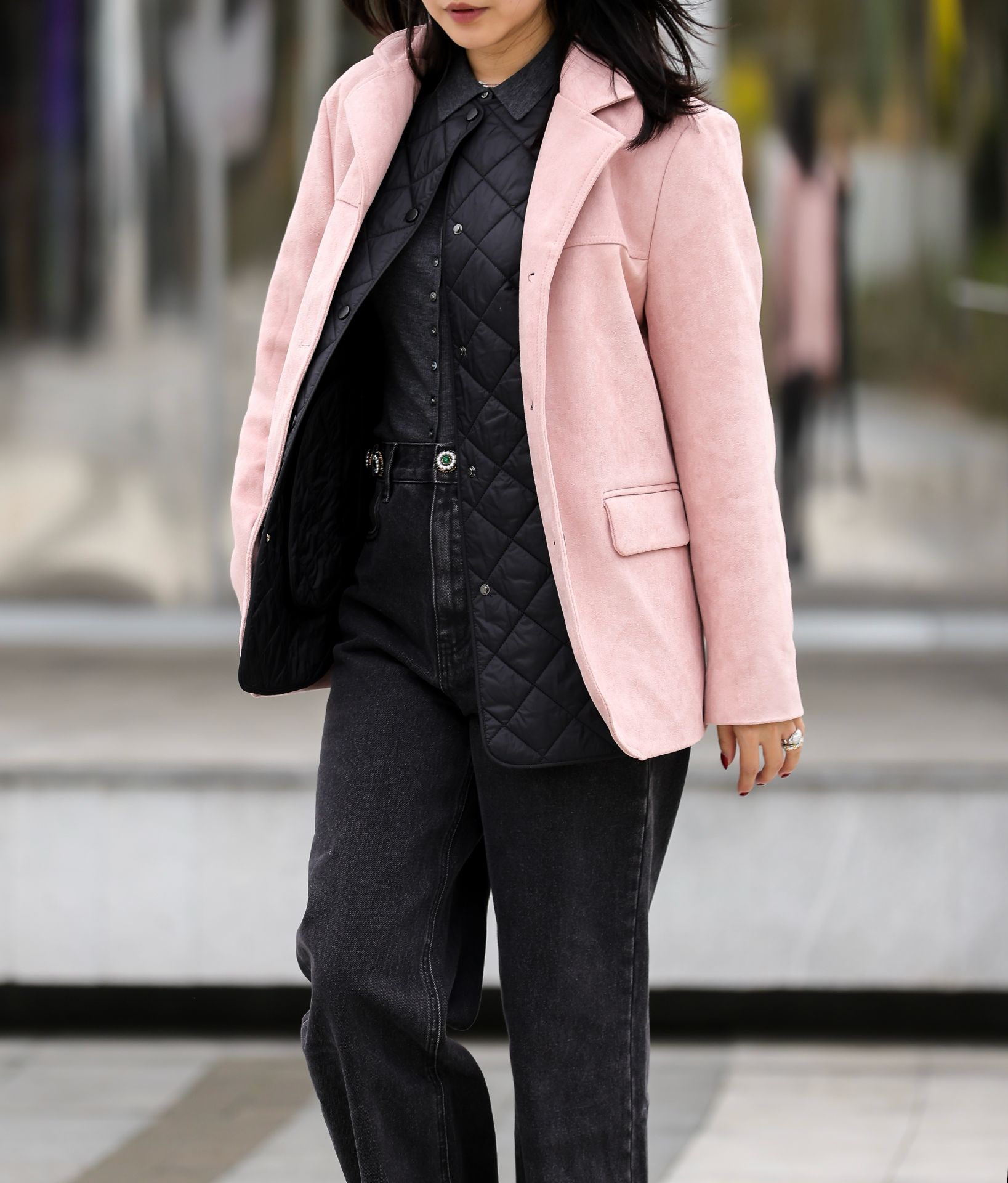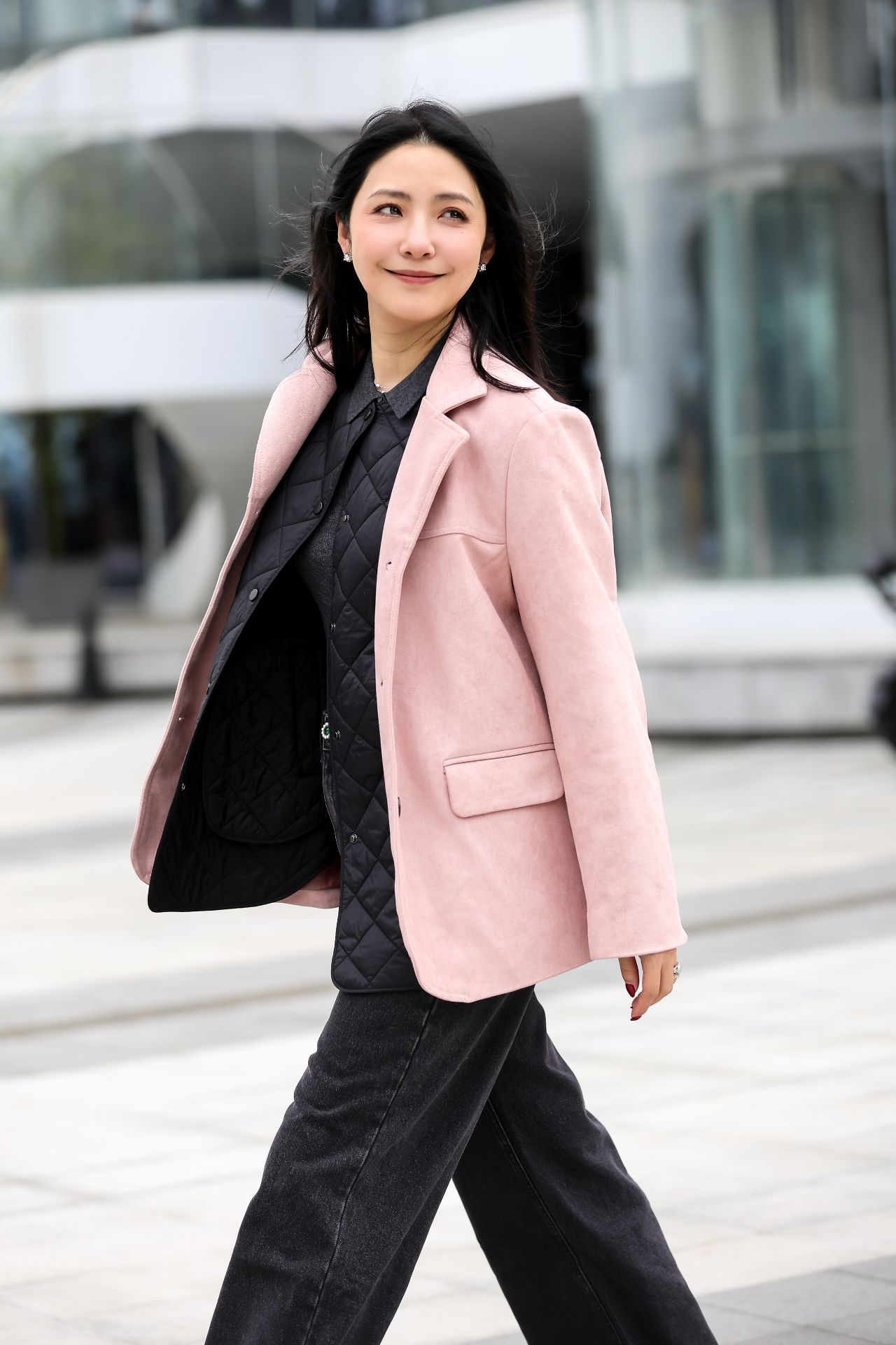 这款JACKIE夹克外套采用了经典的托斯卡纳棕及灰调雾粉色