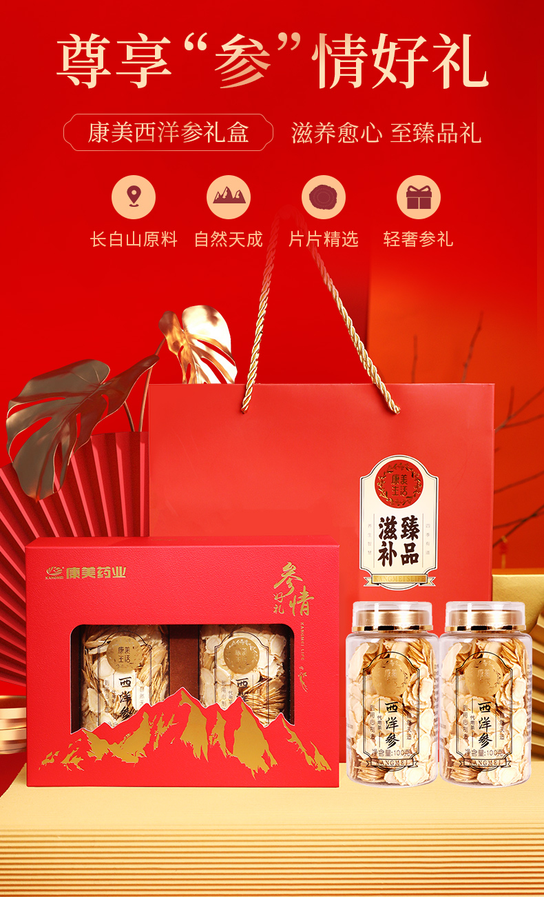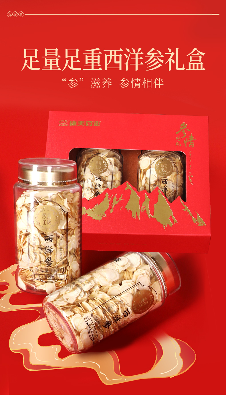 康美新开河红参/康美生活西洋参瓶装礼盒装随意搭配 可泡水泡蜜煲汤
