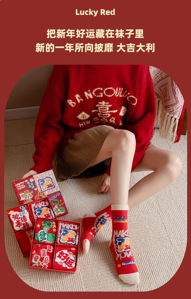 【蛇来运转❗️开运过年红袜套装】好运加持,福气满满❗️蛇年本命年男女秋冬棉袜礼盒2025新年袜子红色中筒袜年货礼盒