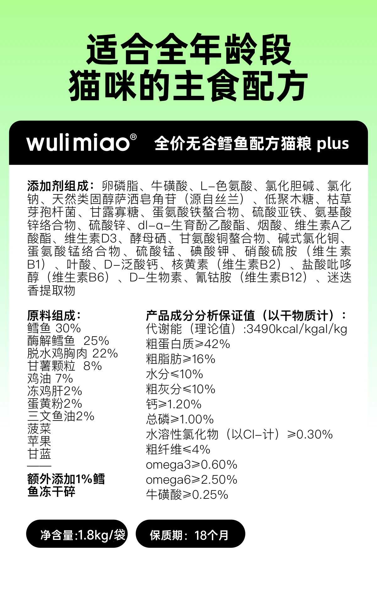 【现货】奢华鳕鱼wulimiao全价无谷鳕鱼配方猫粮量贩装5.4kg