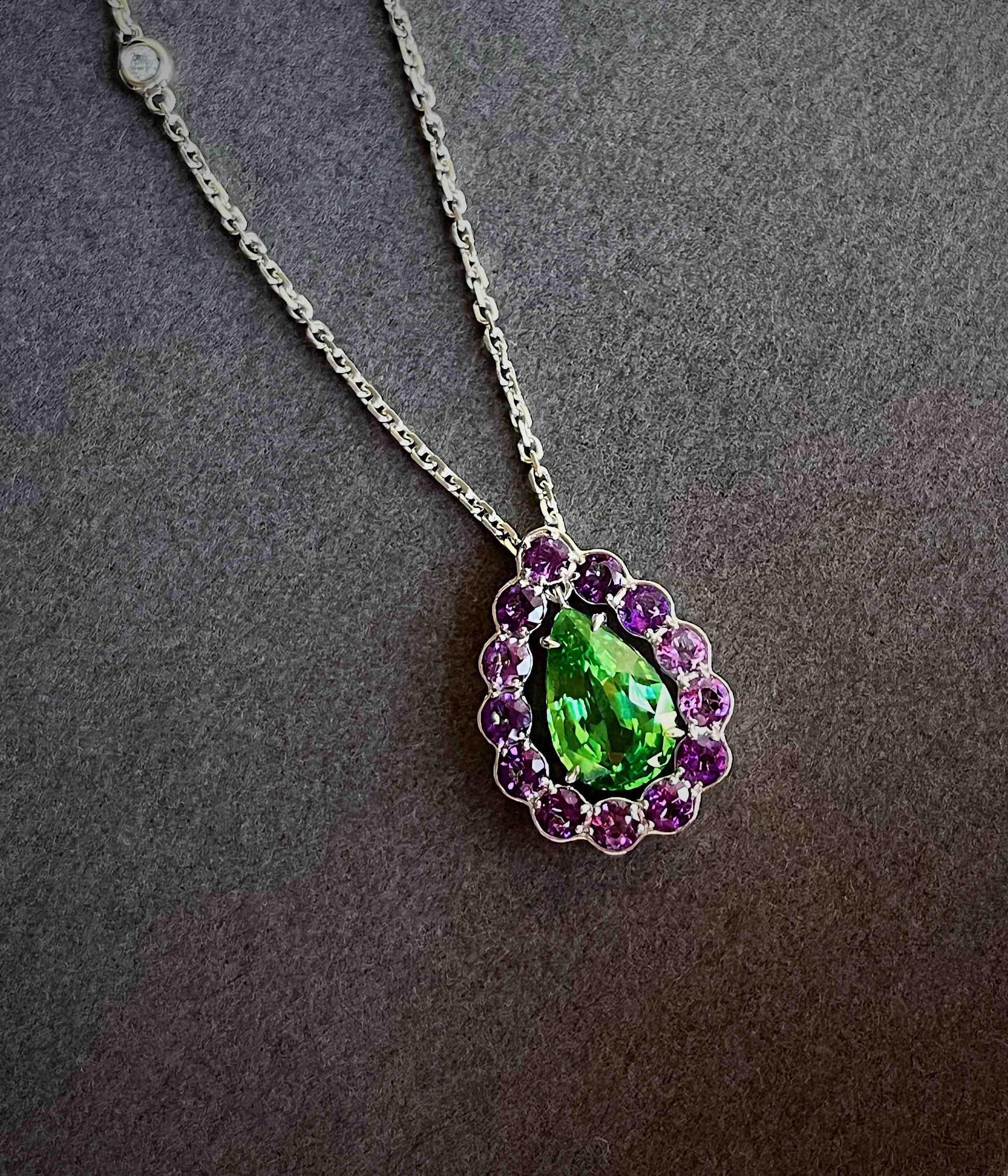 作品名称:18K镶紫晶、钻石和沙弗莱项链