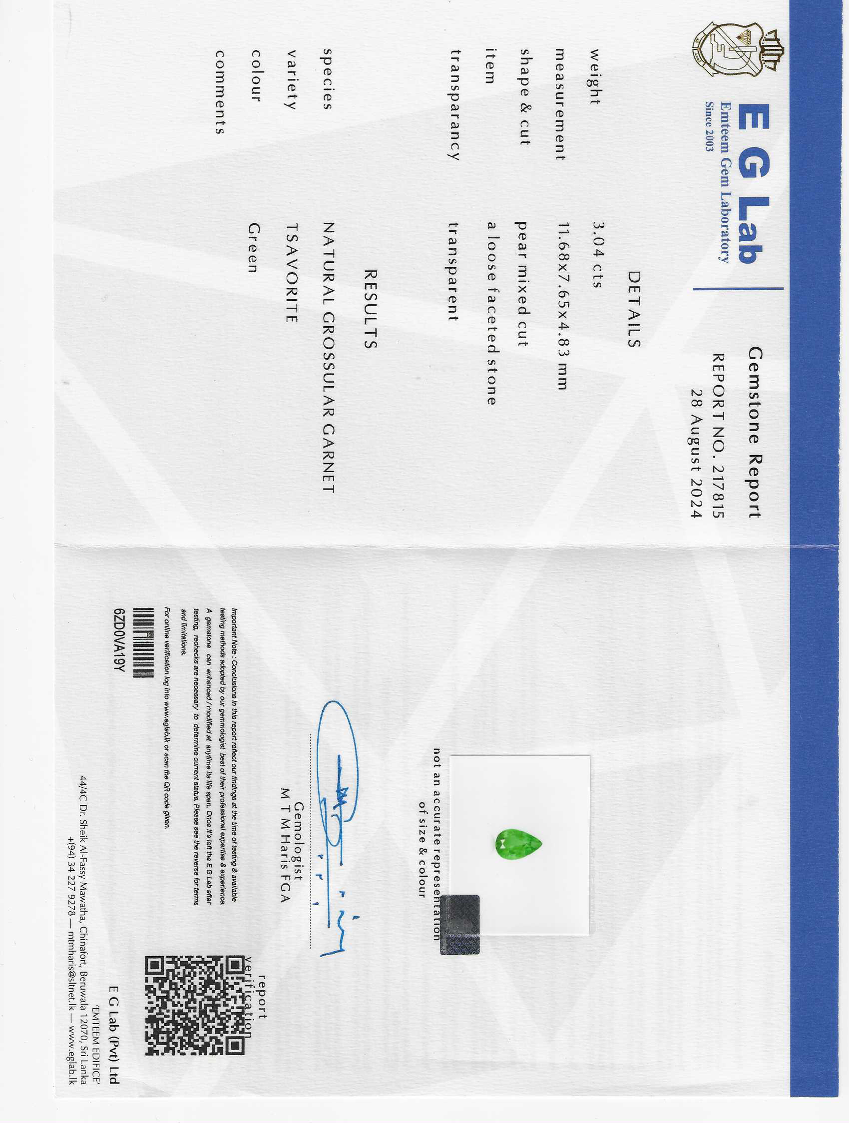 主石石重:3.04克拉