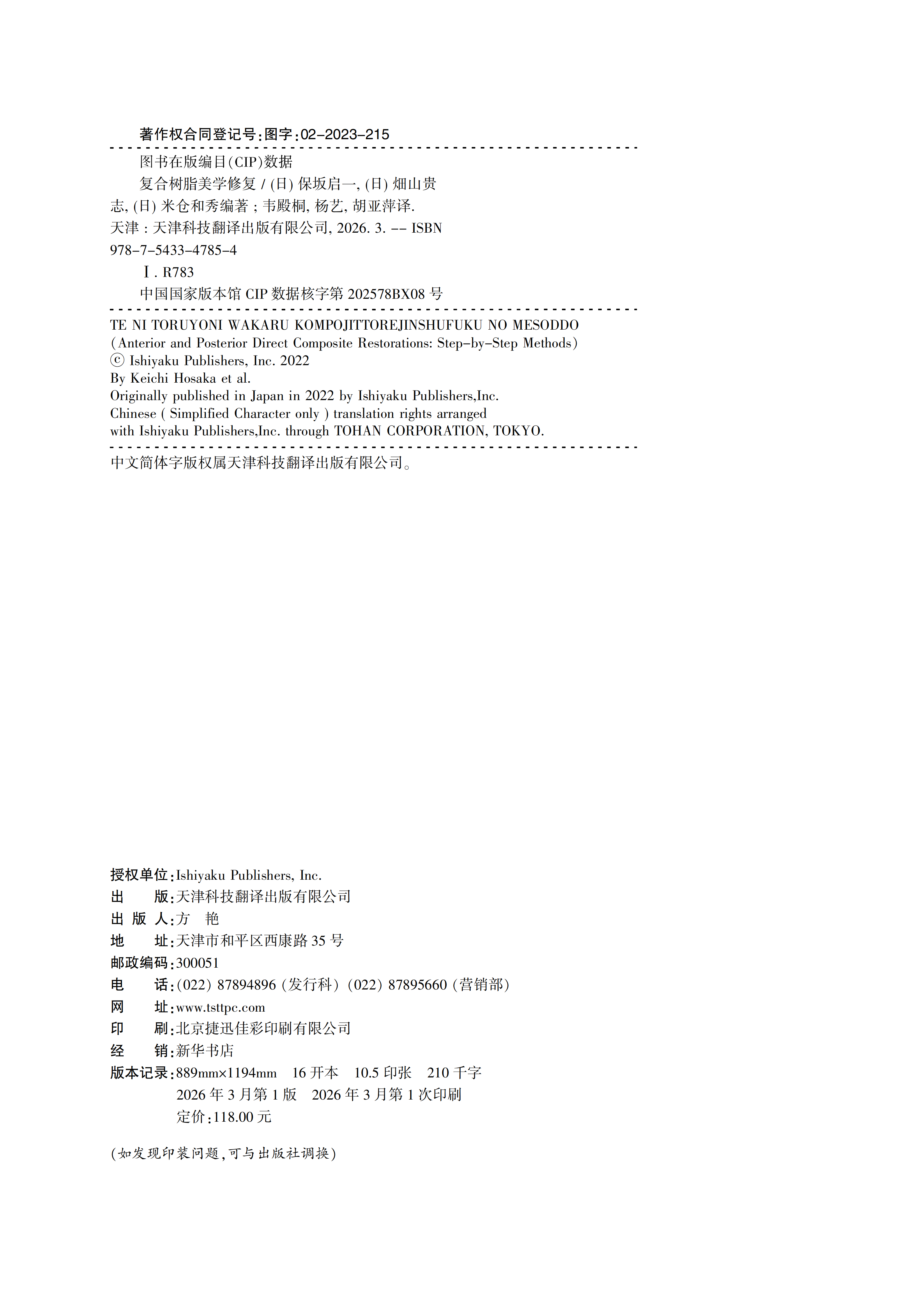 《复合树脂美学修复》,大16开(210*285),平装,四色印刷,168页,定价118元。2026年3月出版。
