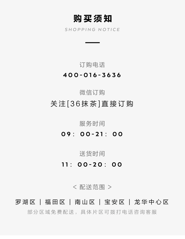 我们目前拥有36MATCHART和36cake两个品牌,主营抹茶甜品与新鲜蛋糕,深受数百万抹茶控和甜品控的拥趸。好吃安心,奶油只选法国铁塔。全城3小时免 费速达。客服热线400-016-3636