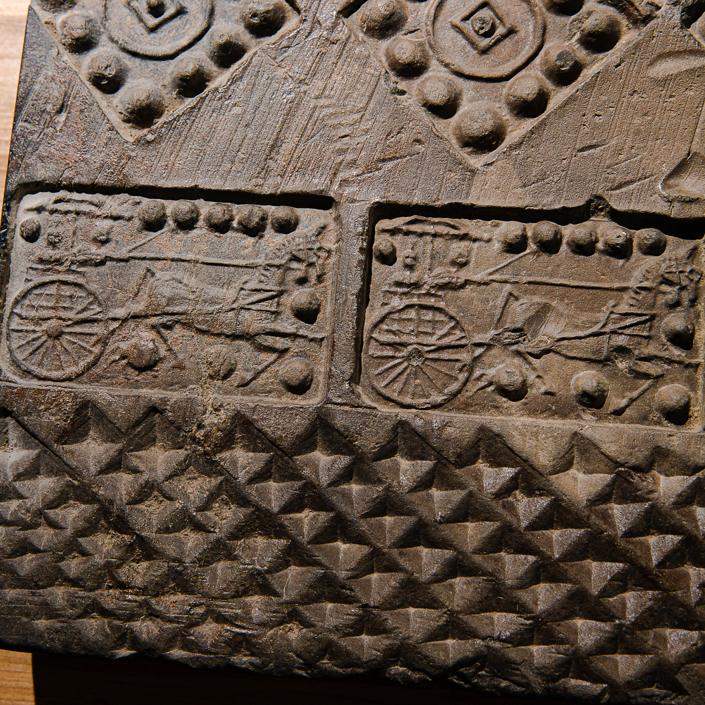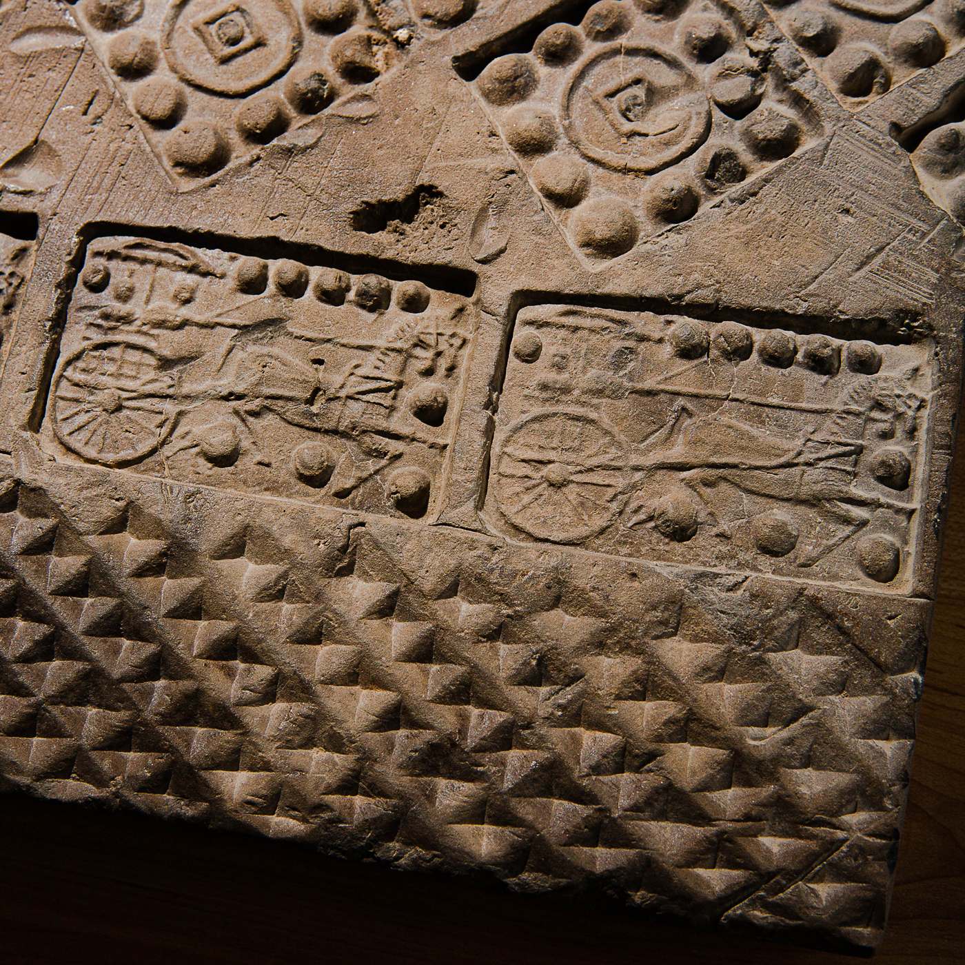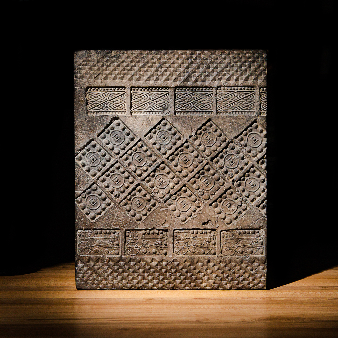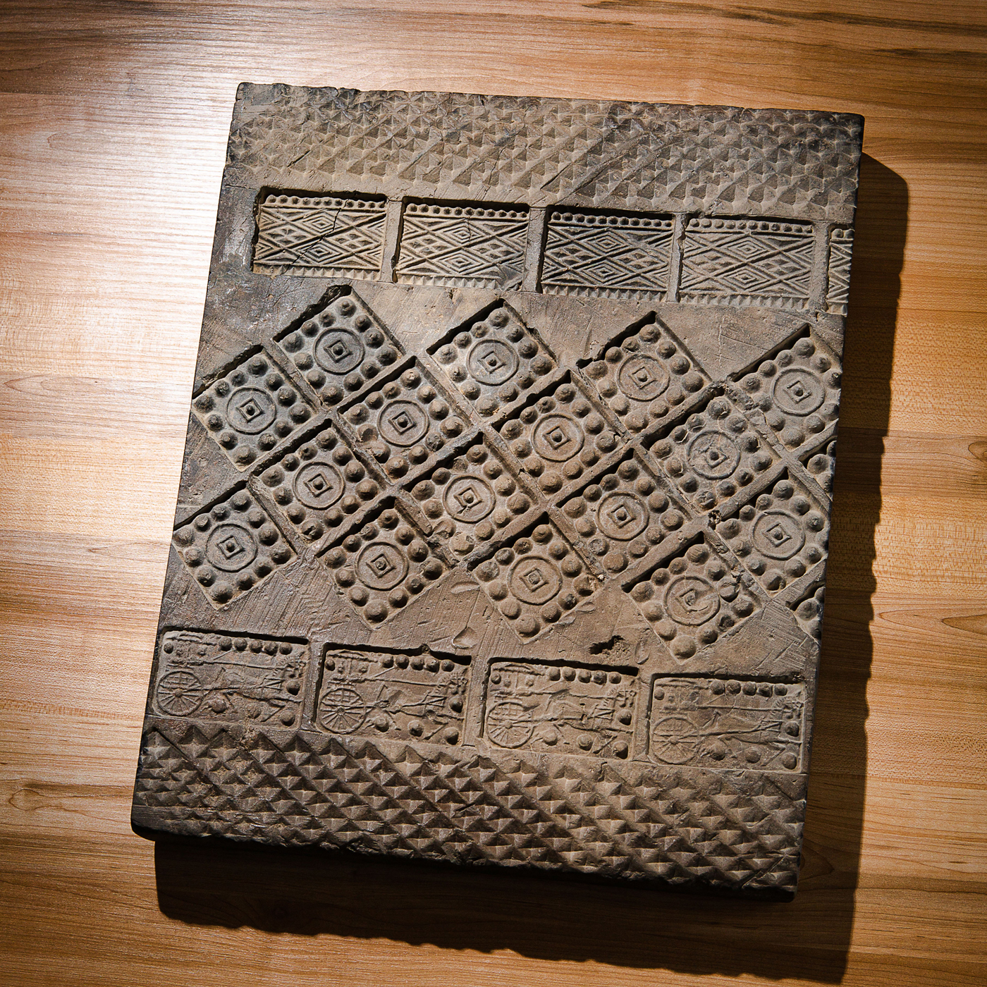 汉代“金钱车马”大古砖,纹饰精美,器型方正,气息古朴,寓意美好。