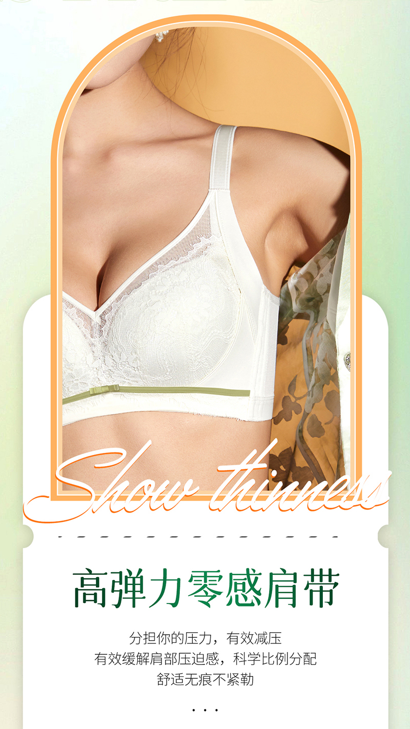 QC-Y1320 无钢圈云感棉超薄透气蚕蛹蛋白面料全天候养护健康文胸(单件)