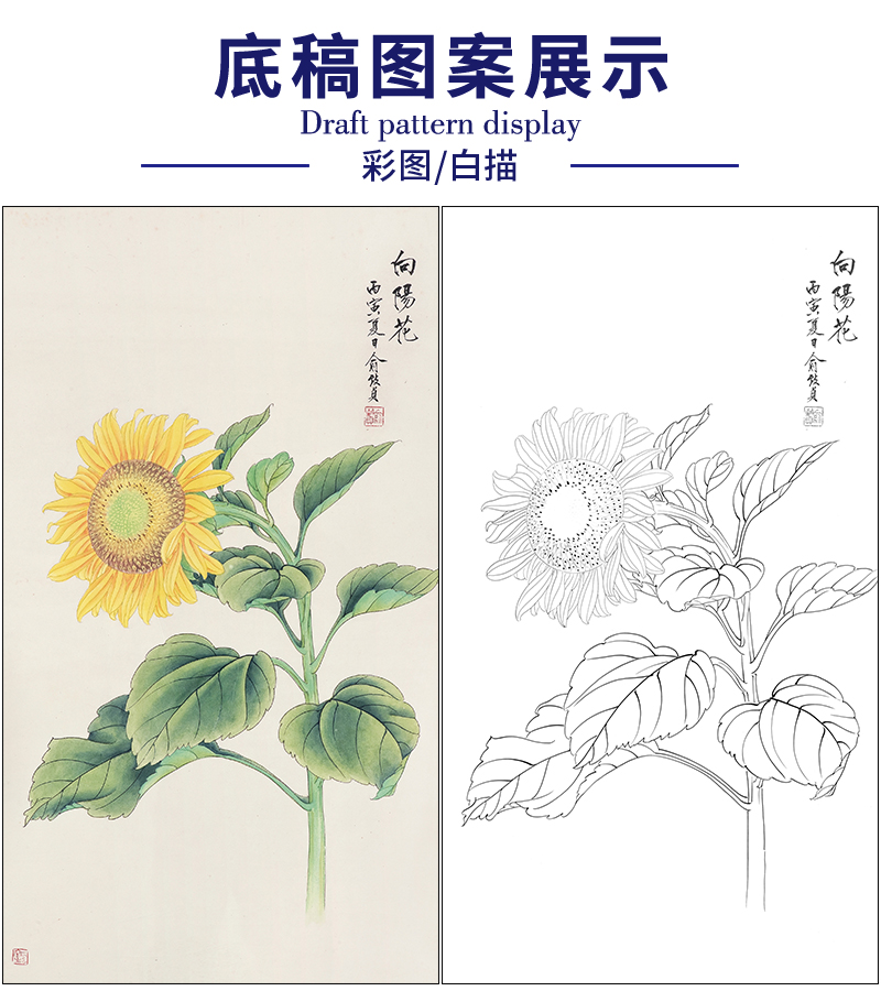 俞致贞花鸟向日葵工笔画白描底稿《向阳花》临摹勾线高清打印稿ZZ52