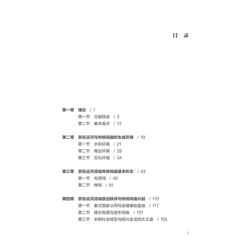 本书从社会文化学角度研究浙东运河流域的传统祠庙,第一章宏观论述浙东运河流域社会文化与传统祠庙之间的关系,揭示传统祠庙蕴含的多重文化内涵;第二、三章系统梳理浙东运河流域传统祠庙生成环境、基本类型,从而为深入的个案研究铺平道路;第四、五、六章从浙东运河流域政治秩序、地方传统、社会环境角度切入,以秦始皇庙、越州旌忠庙、明州海神庙、金龙四大王庙、禹庙、西施庙、鲍郎庙、董孝子庙、曹娥庙、范蠡庙为个案,揭示浙东运河流域传统祠庙兴衰过程、功能嬗变、多元建构等方面基本情况及其内在规律;第七章揭示在浙东运河流域“五水共治”、乡村振兴、城市化进程等推进过程中,传统祠庙等古建筑保护、传承、利用的得与失,提出相应的对策建议。