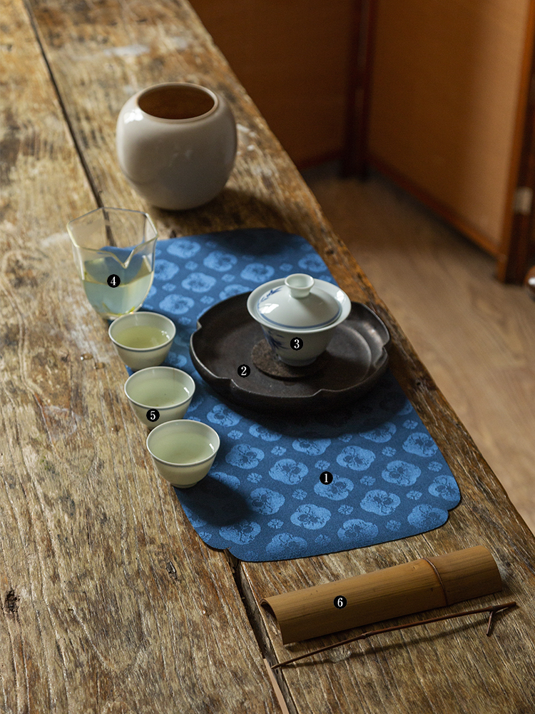 茶香记 古窗石榴纹锦面小茶席 小巧明艳 古典雅致 双面防水 配件