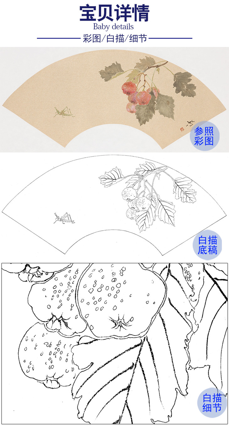 张莉莉没骨画工笔花鸟白描底稿-山楂扇面小品-ZA38