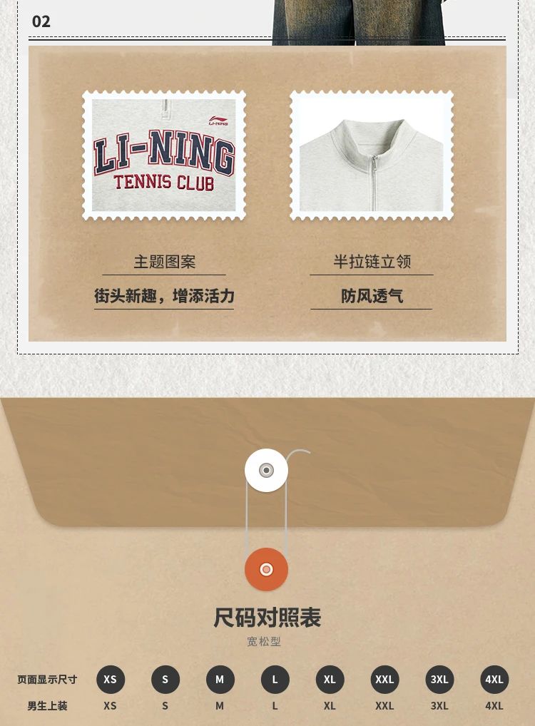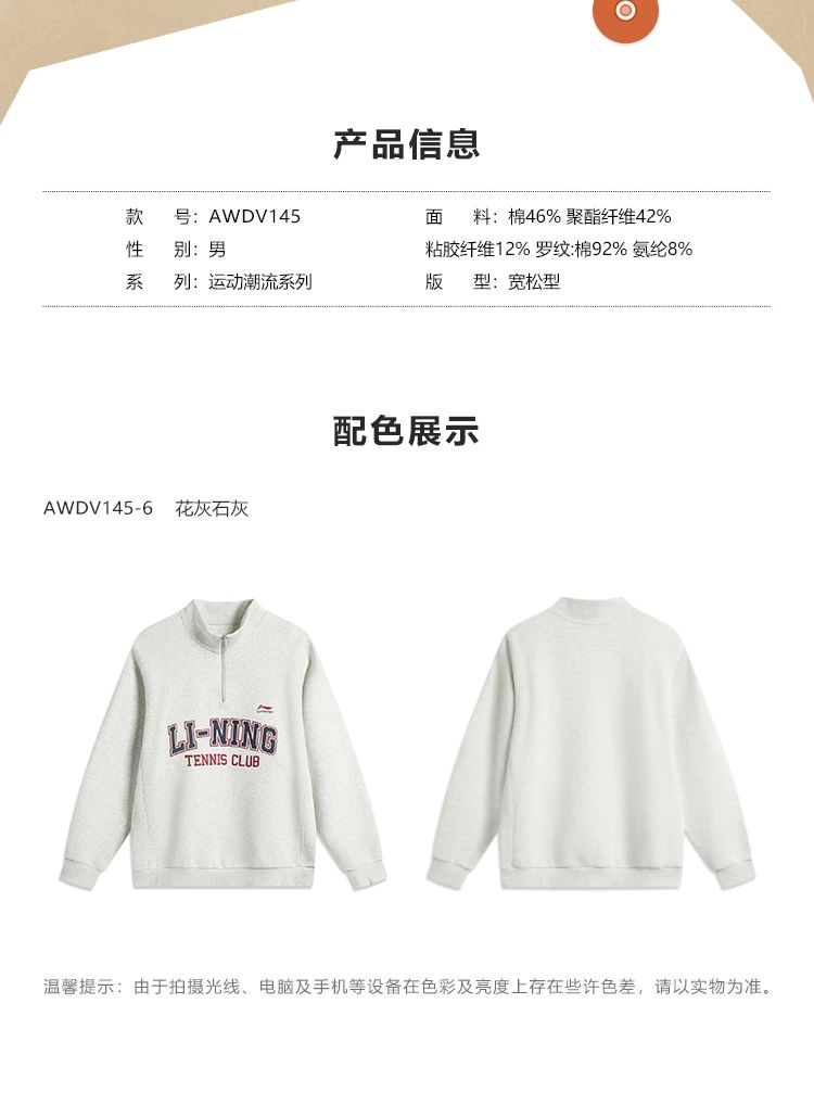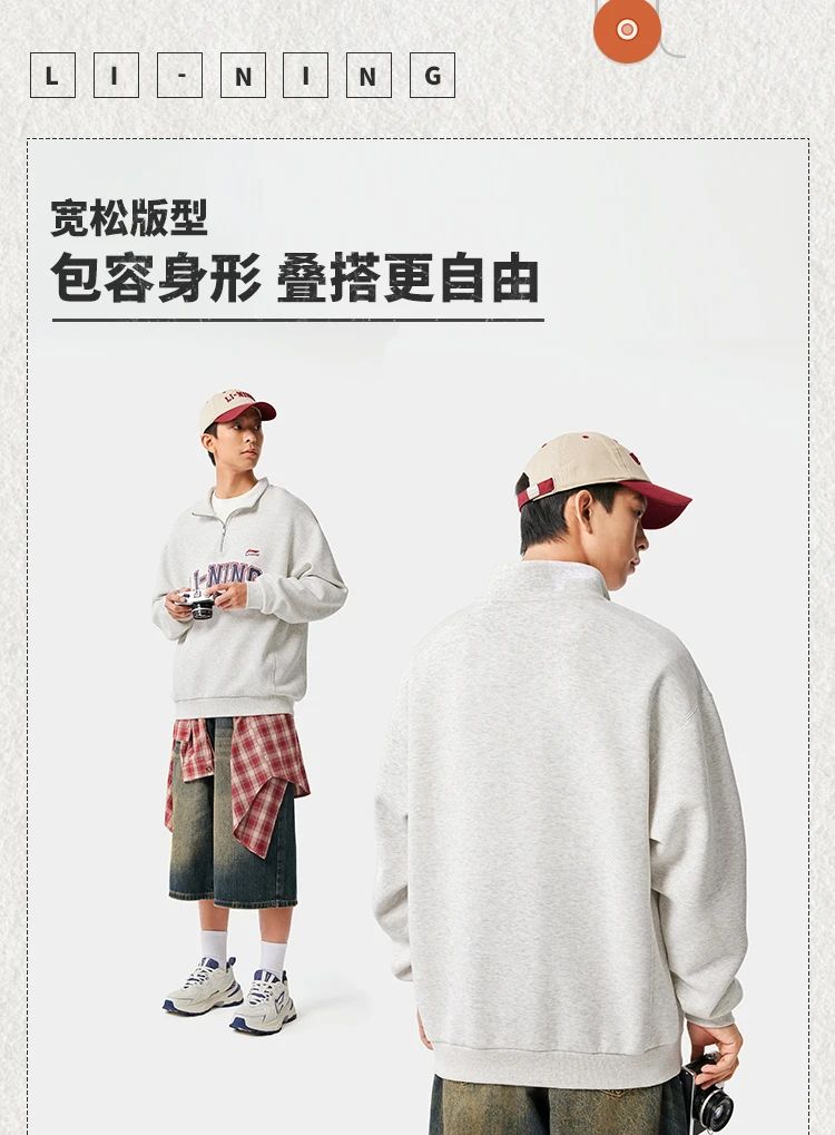 李宁运动潮流系列男女同款半拉链时尚宽松套头卫衣AWDV145