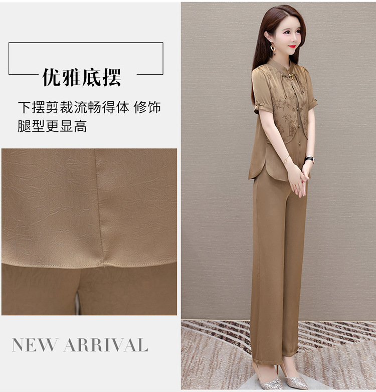 QYMOMS-YBA468-L 2024年夏款新中式国风时尚短袖小衫简约长款显瘦休闲阔腿裤两件套 商品图2
