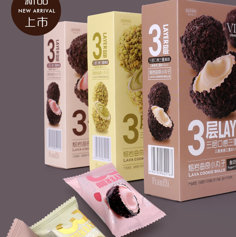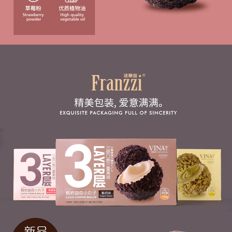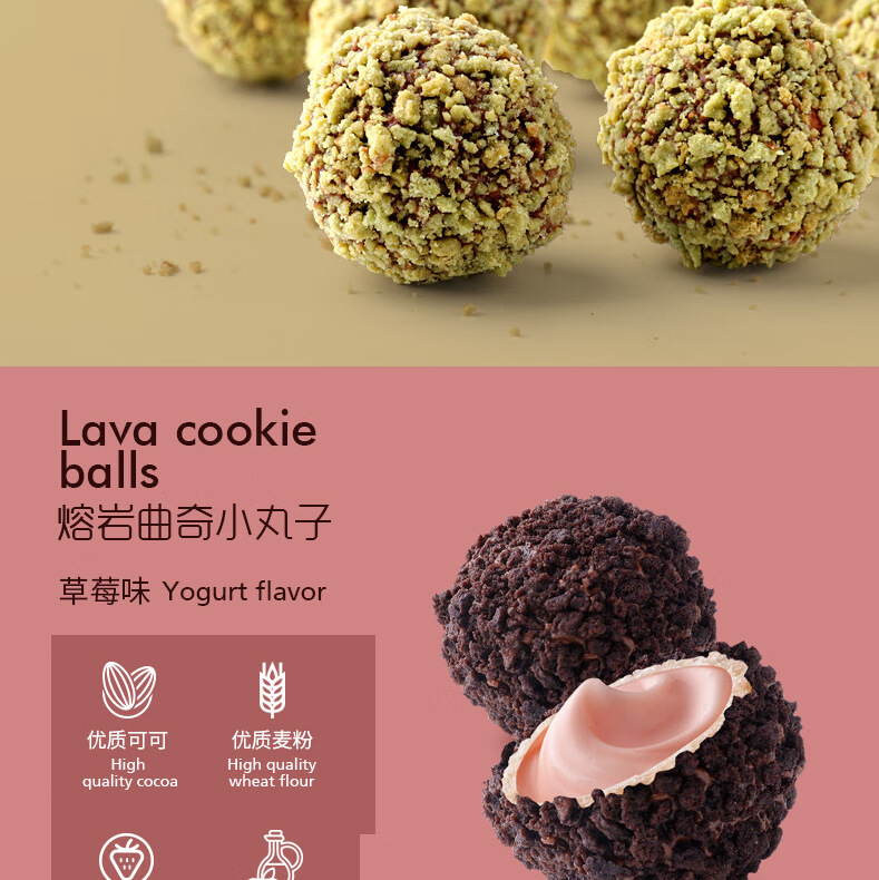 【三层口感!爆浆细腻】法丽兹熔岩爆浆曲奇小丸子100g盒装草莓味儿童休闲小零食品网红。xb