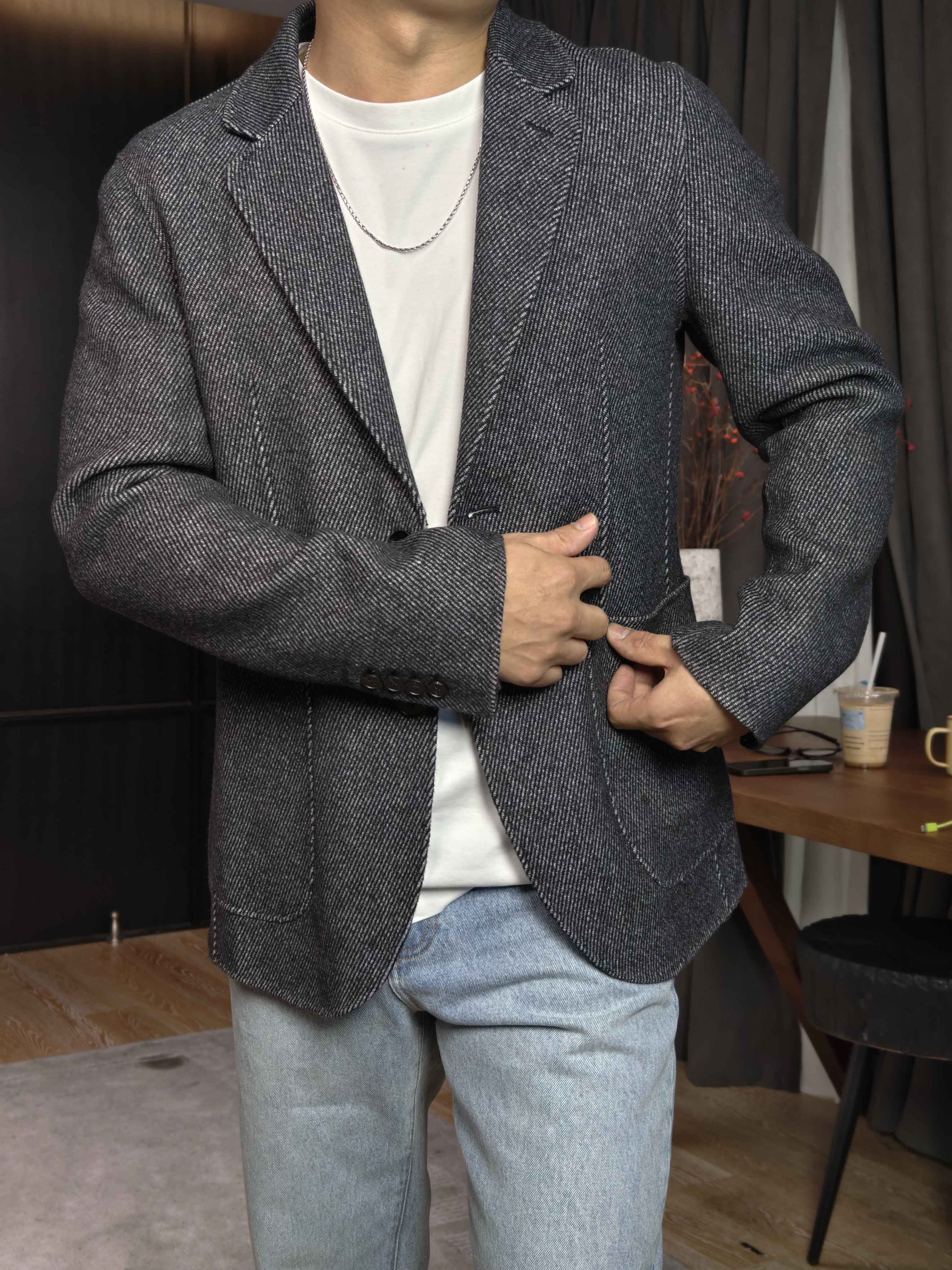 瓜哥私服·人字纹质感羊毛西装外套-双面呢面料