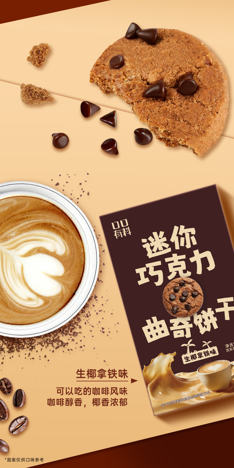 【风味丰富!迷你小巧】迷你巧克力曲奇饼干生椰拿铁味咖啡味饼干巧克力豆饼干休闲零食。xb