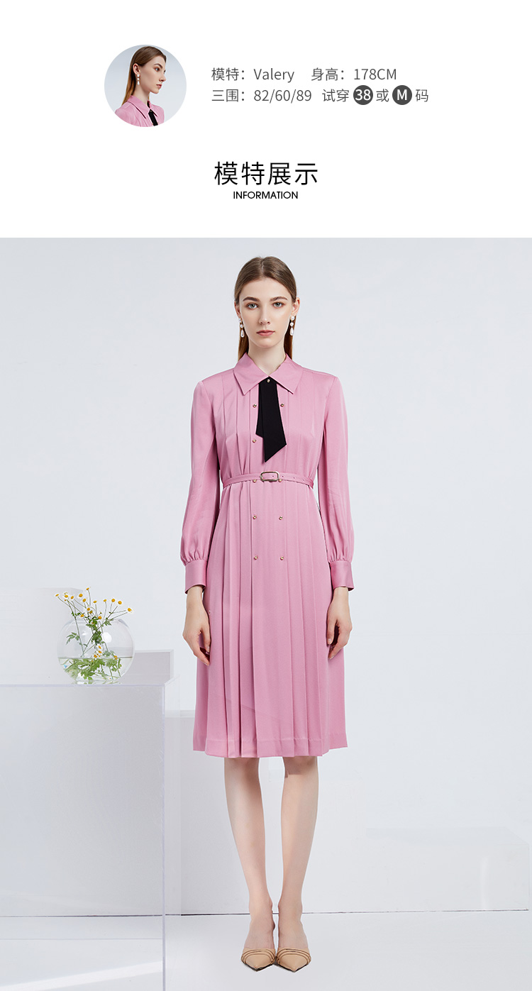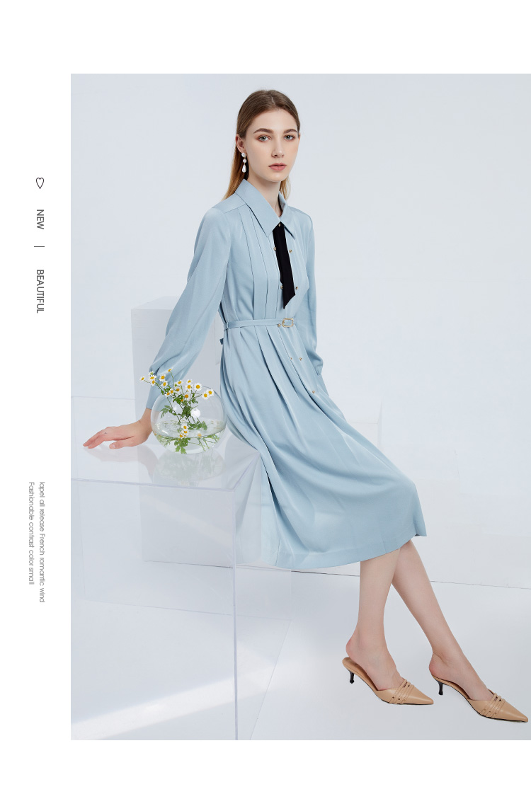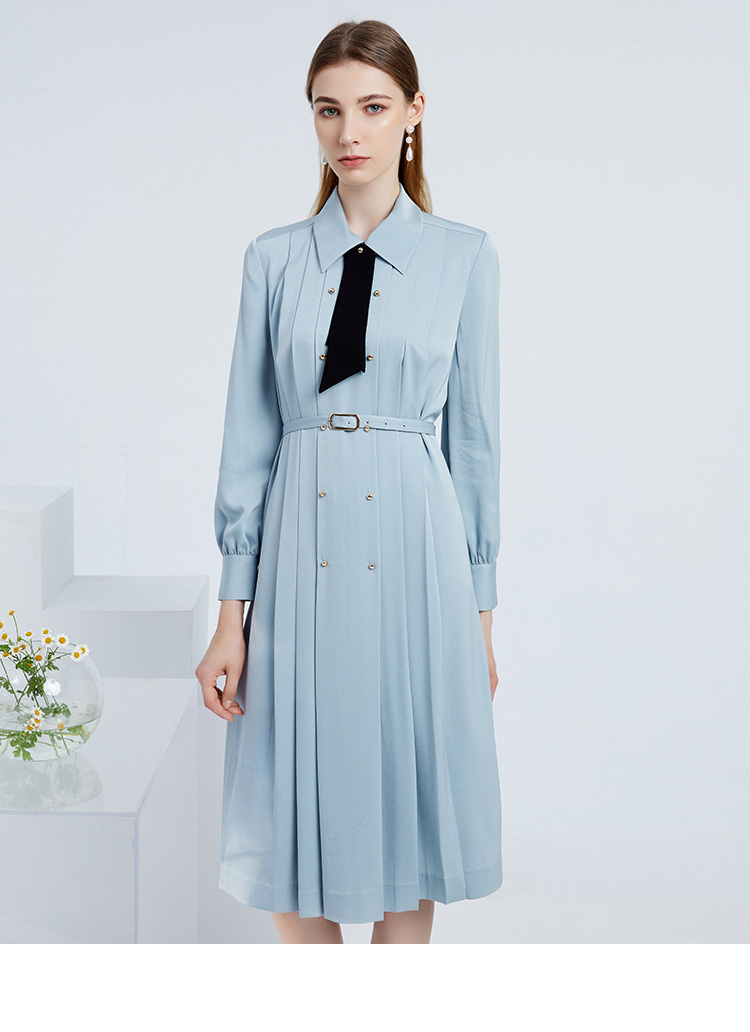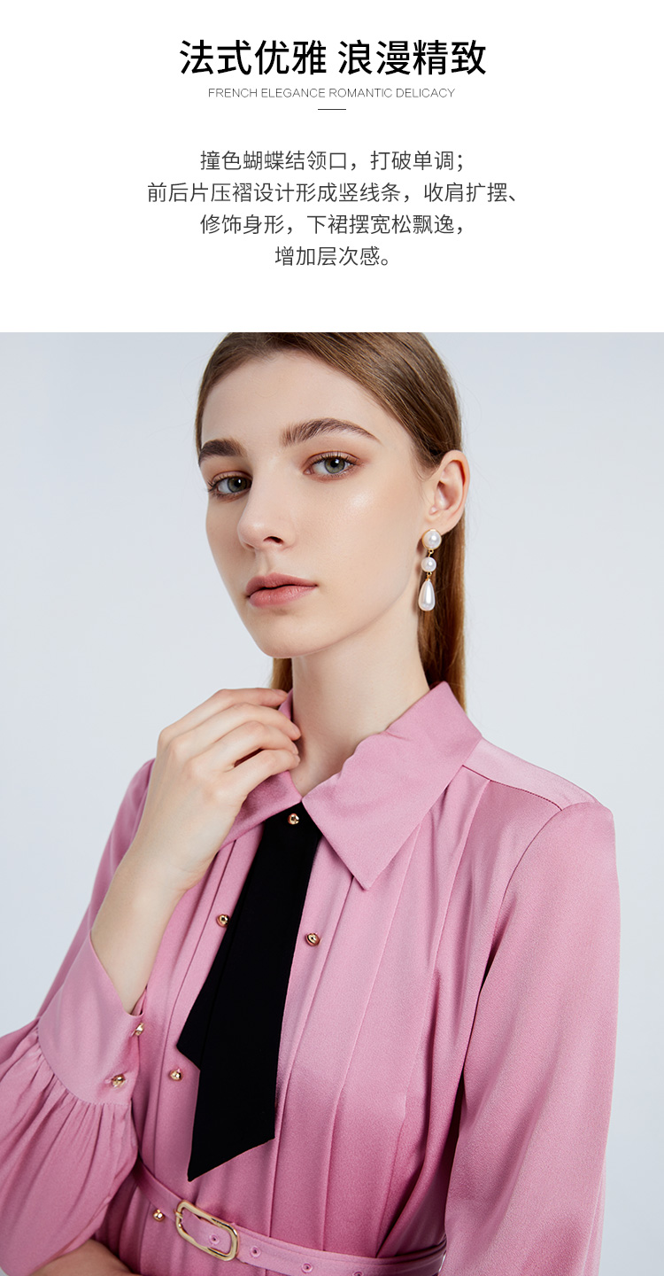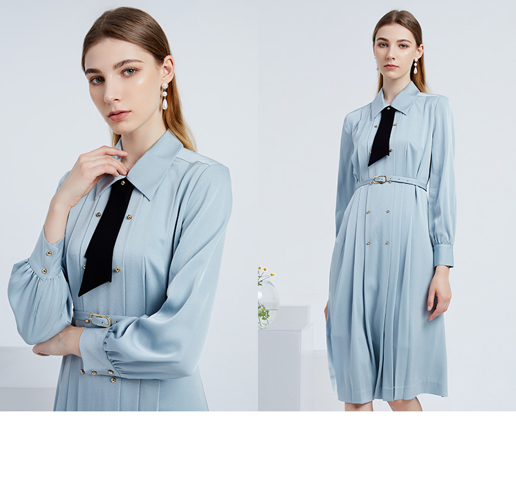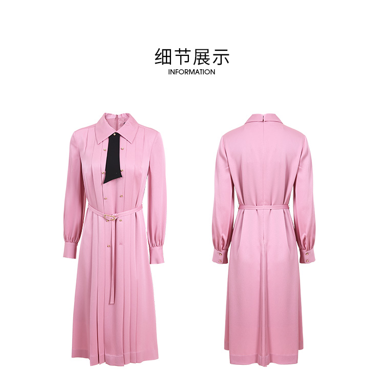 EITIE爱特爱女装春夏长袖修身中长款纯色连衣裙6507245