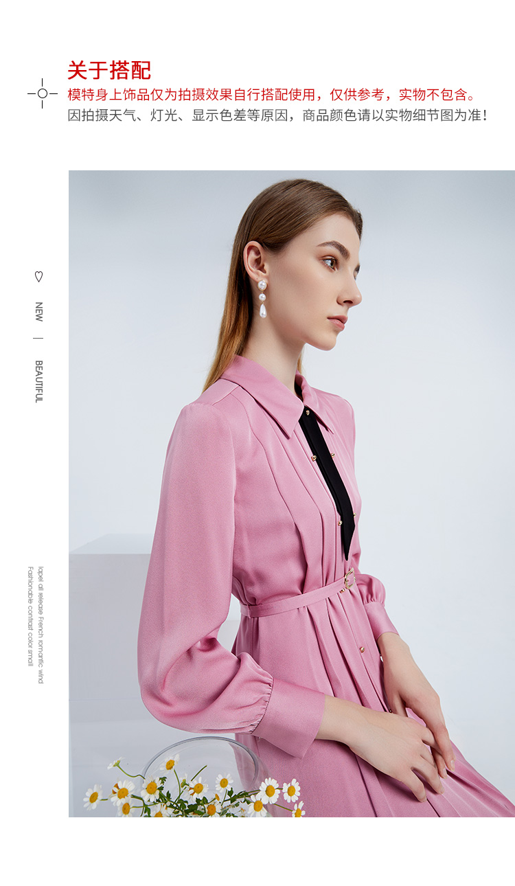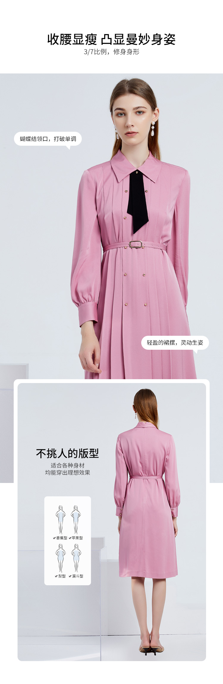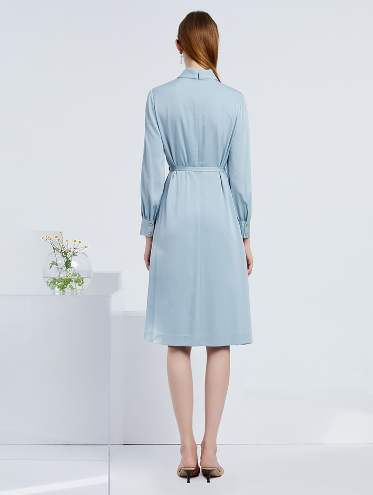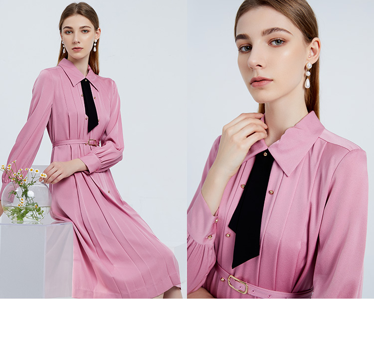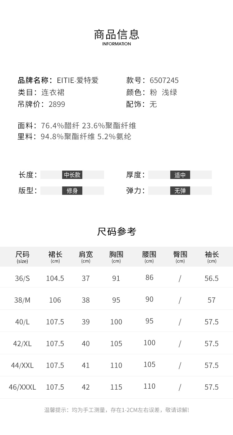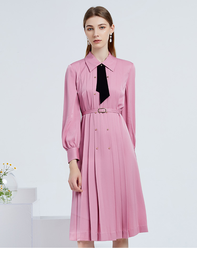 EITIE爱特爱女装春夏长袖修身中长款纯色连衣裙6507245