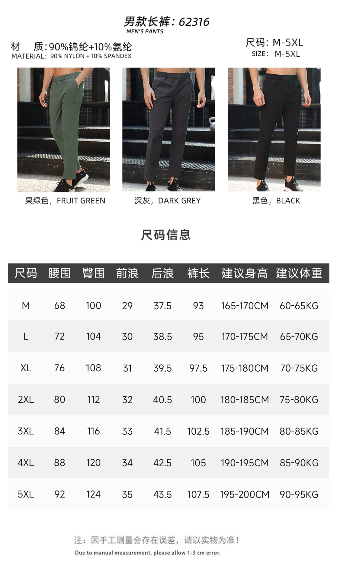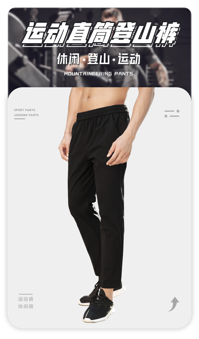 跃牌【PF系列】秋季男运动裤修身直筒弹力登山布户外休闲长裤运动裤男62316