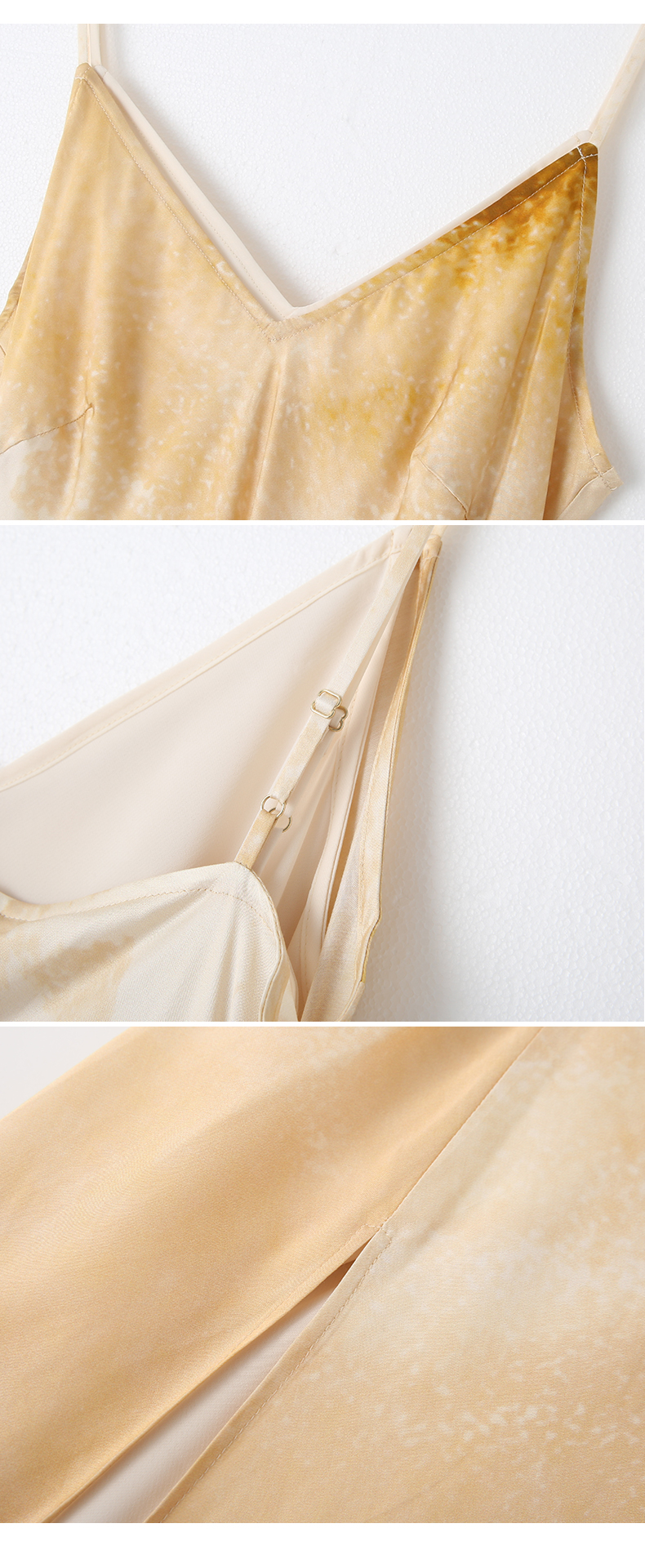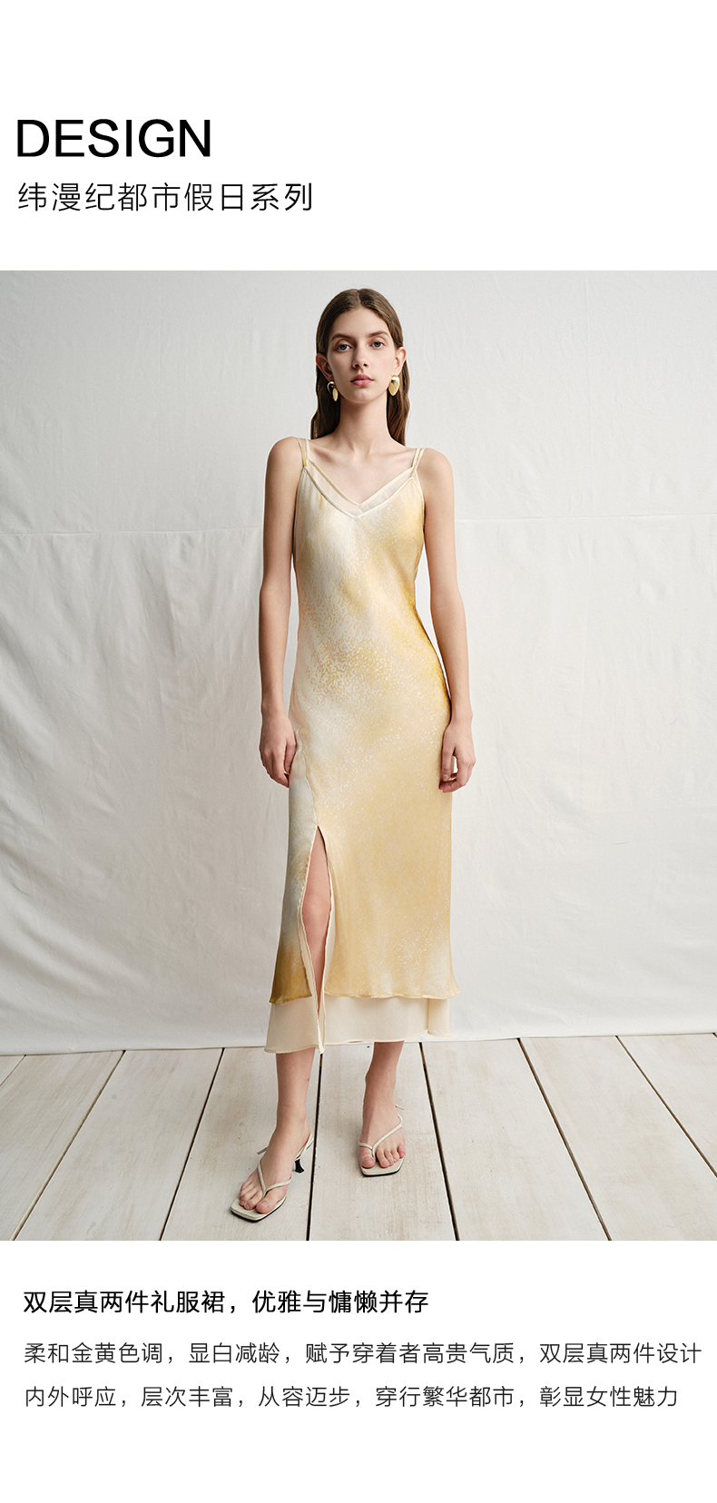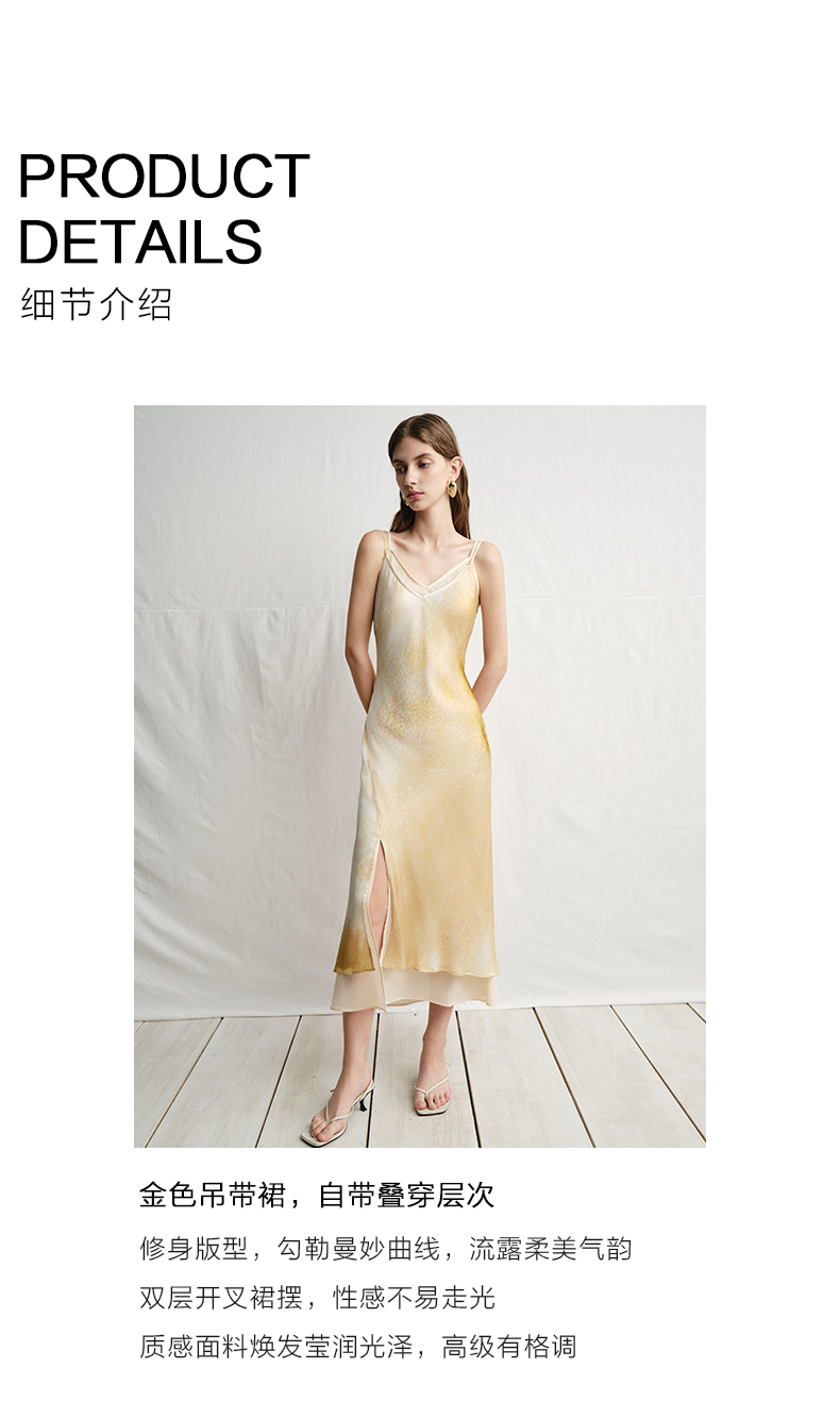 VIMAGE纬漫纪2025夏季新款设计感晕染印花高级V领修身显瘦吊带连衣裙V2377908