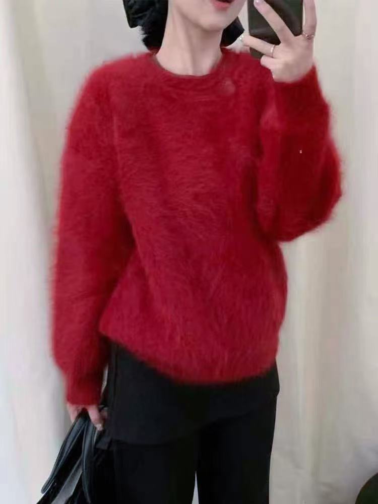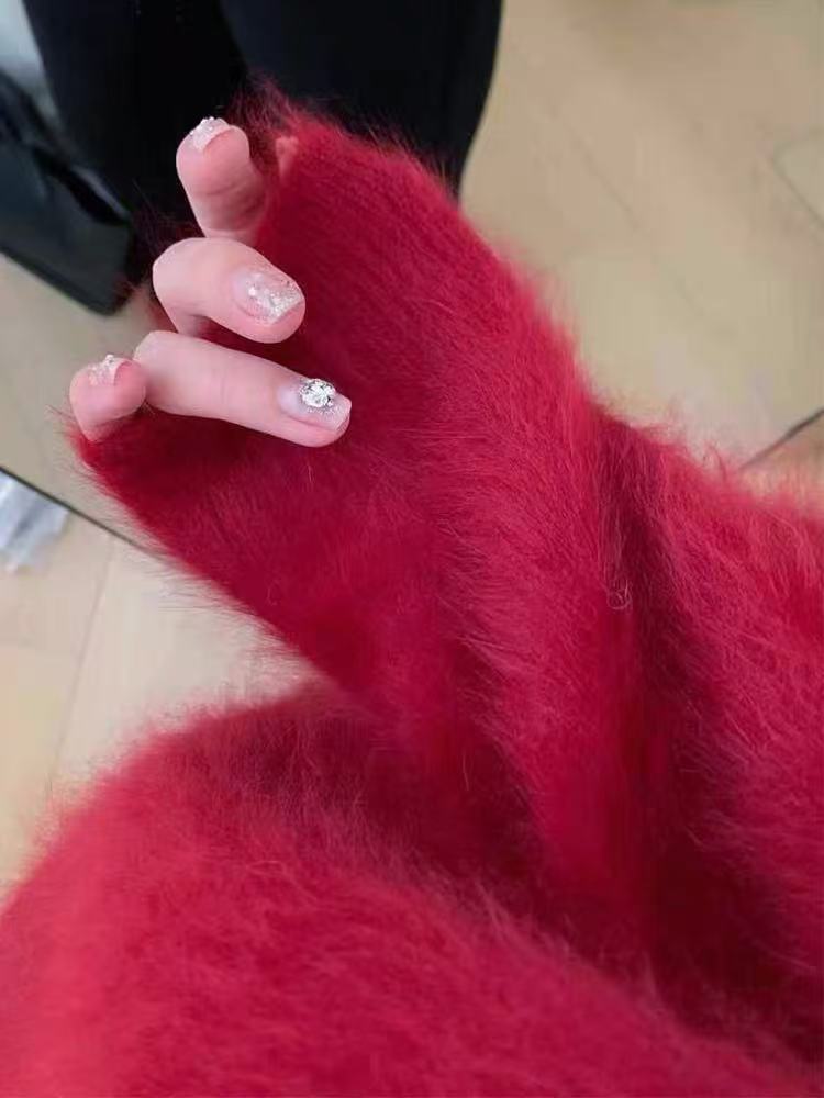 【孤品捡漏】G61-1大红仿水貂毛针织软糯毛衣-喜出