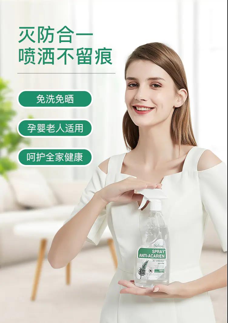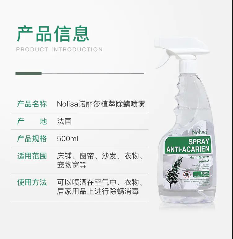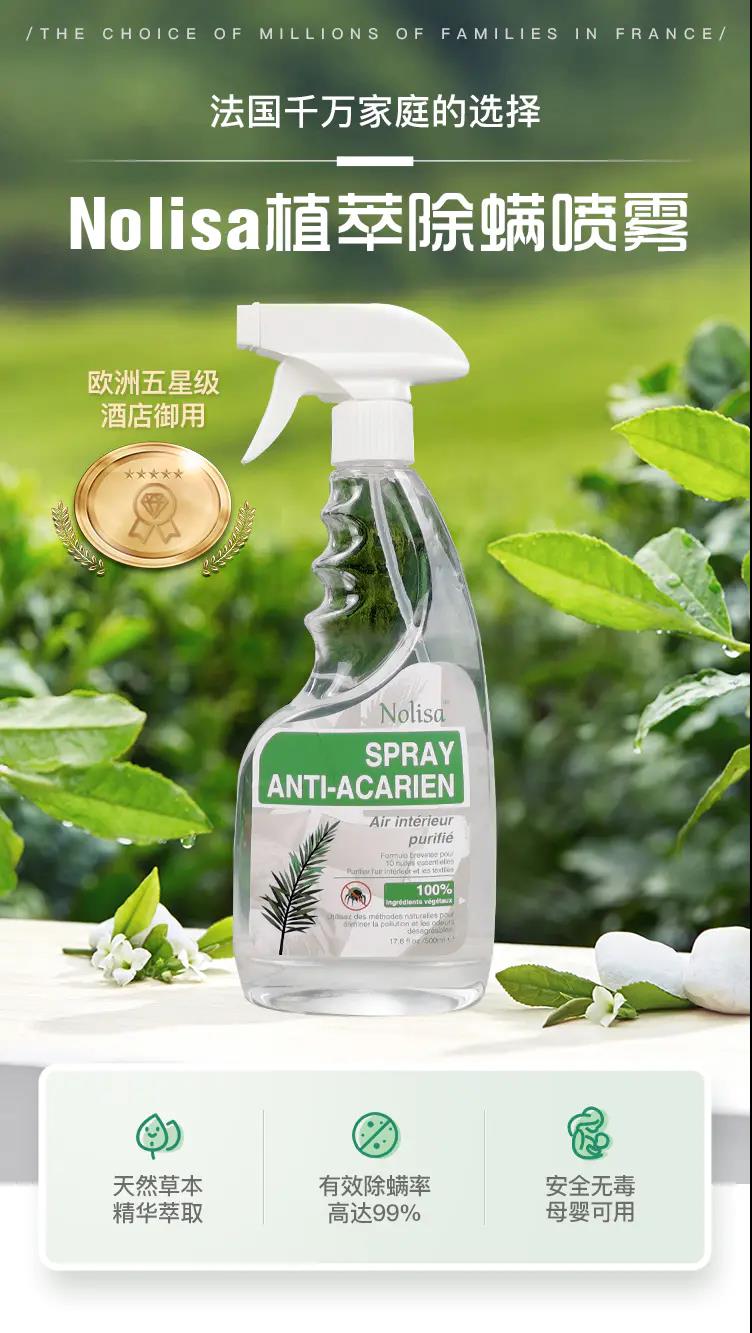 【法国进口】诺丽莎Nolisa精油除螨喷雾剂去尘螨祛螨虫克星神器床上免洗,500ml大容量母婴可用,欧洲五星酒店御用