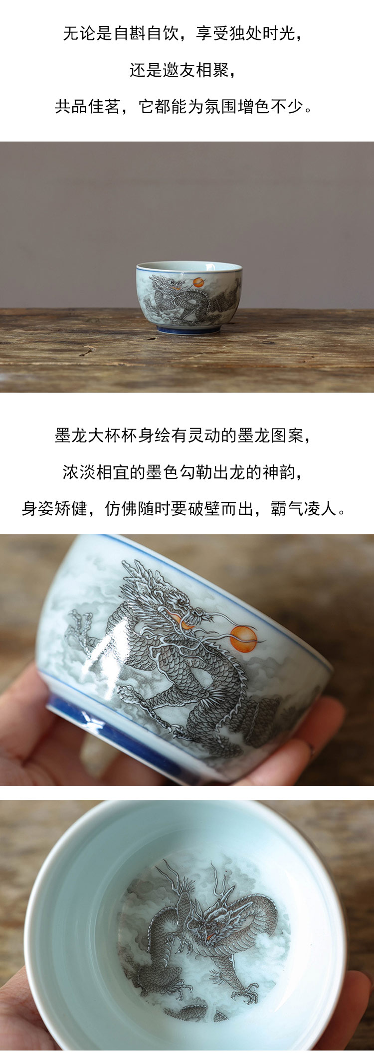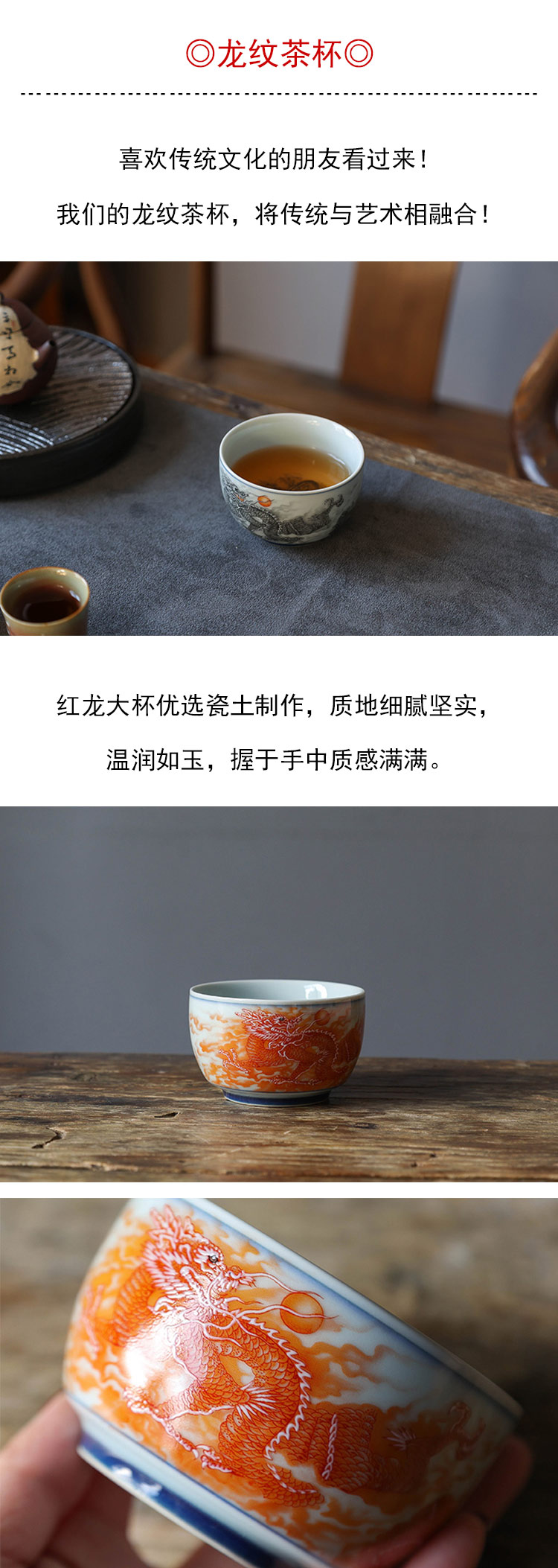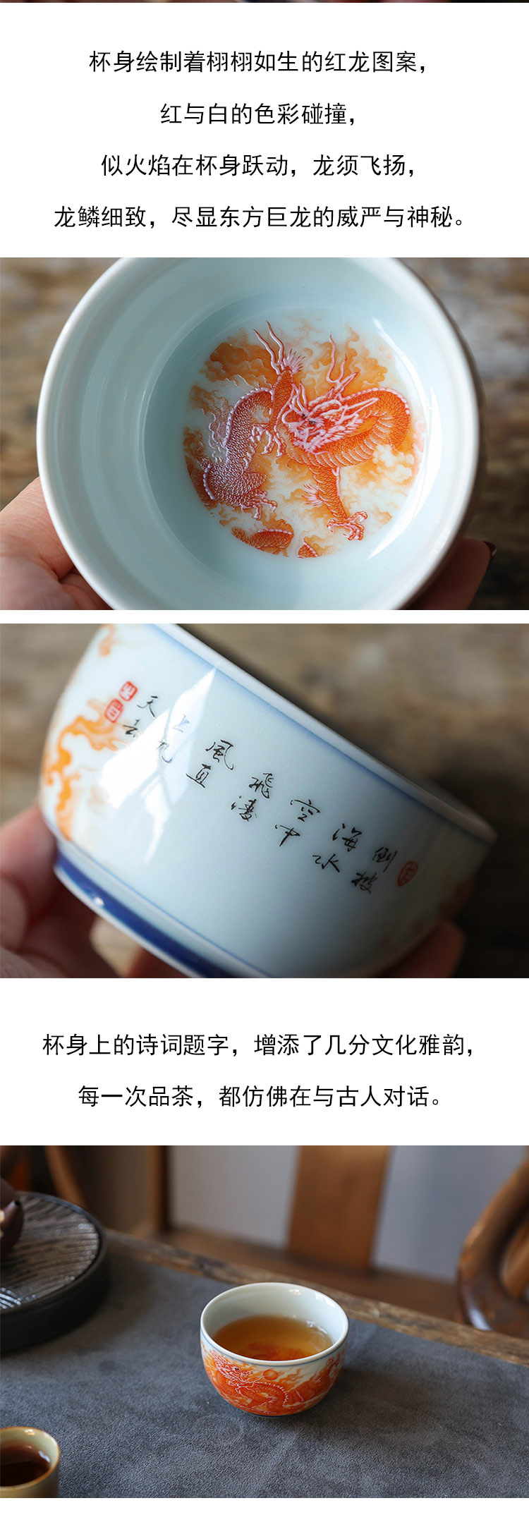 茶香记 墨龙大杯红龙大杯140ml陶瓷主人杯温润如玉龙纹茶杯功夫茶具