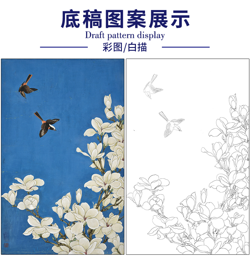 于非闇花鸟工笔画白描底稿《玉兰双雀》临摹勾线高清打印稿HS35