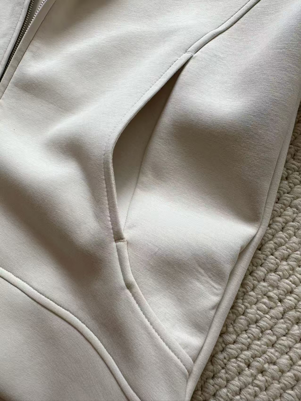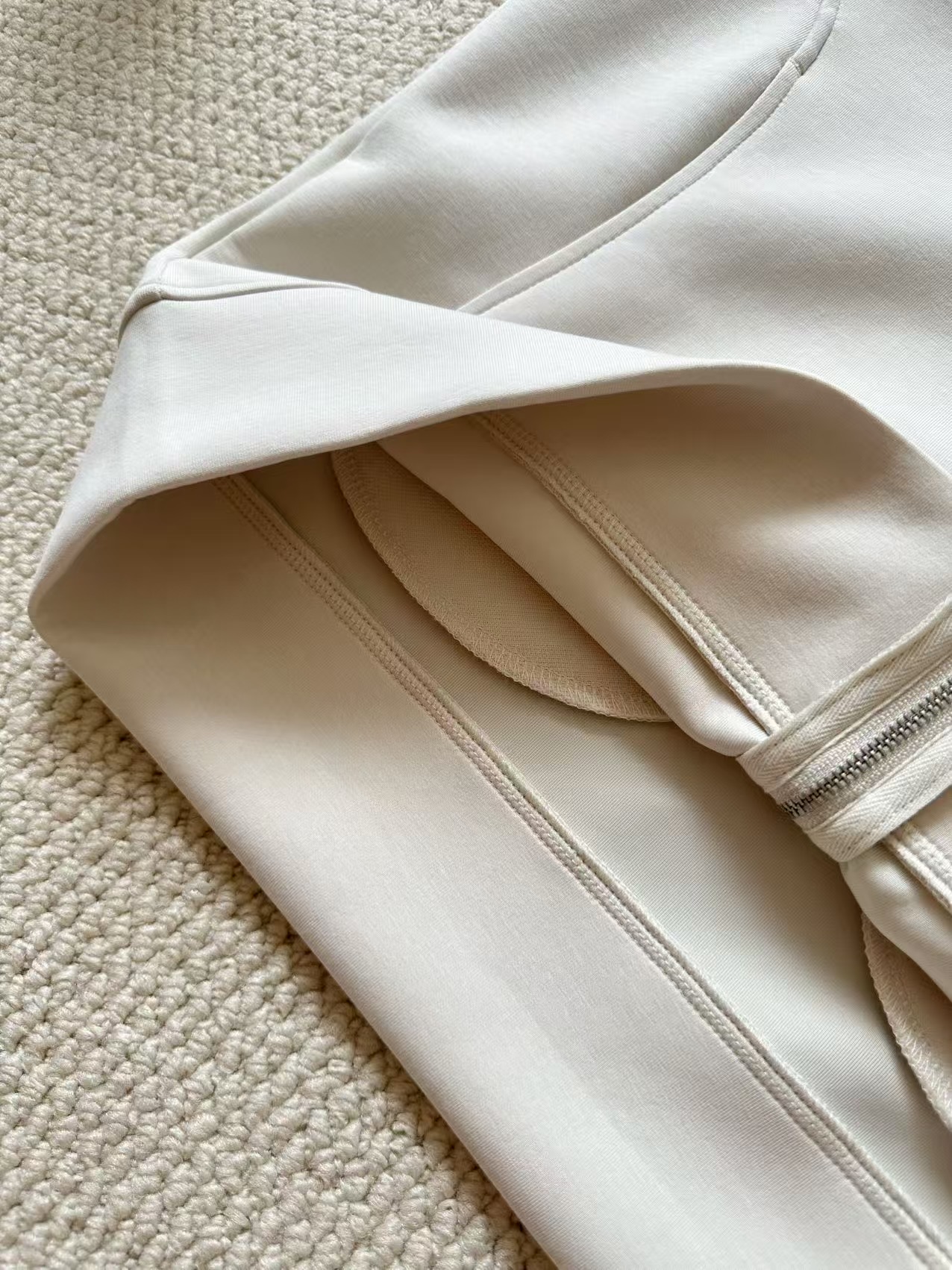 两侧弧形口袋分割设计,简约实用,方便携带随身物品。