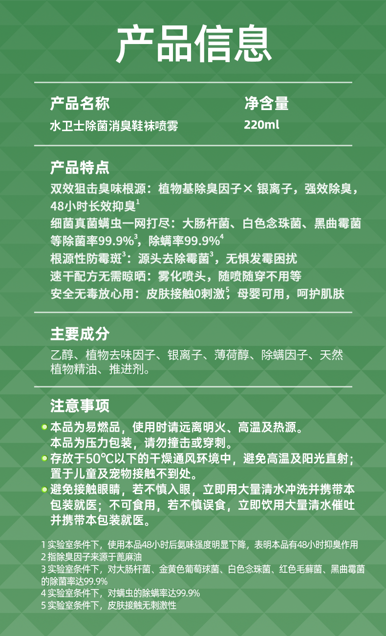 水卫士除菌消臭鞋袜喷雾/1瓶(220ml)限用日期:28年5月补单专用