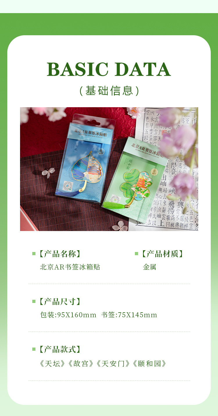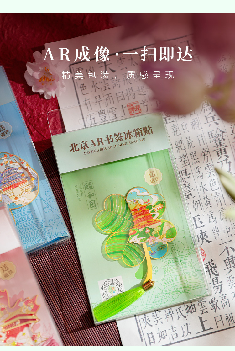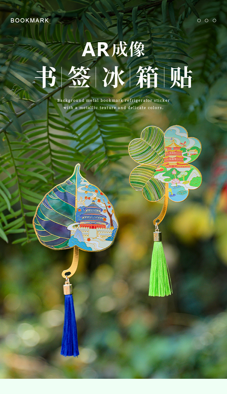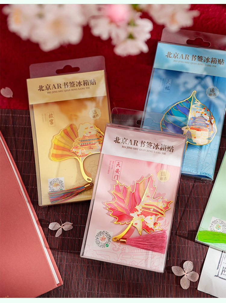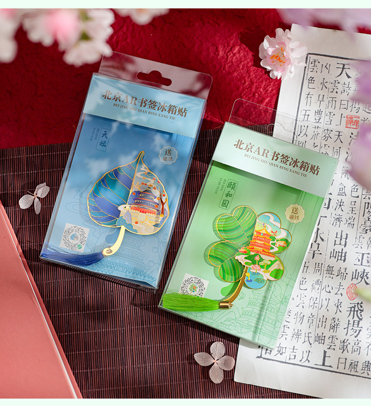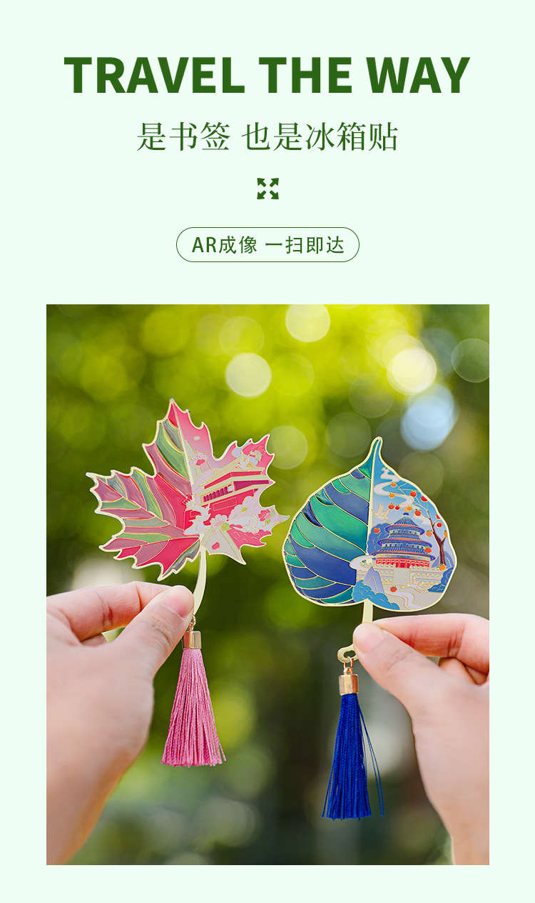【北京AR透光树叶书签冰箱贴】天安门故宫天坛颐和园地标文创金属冰箱贴