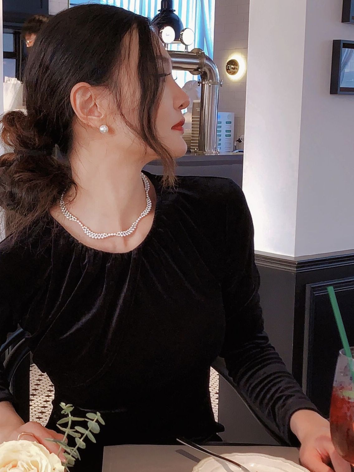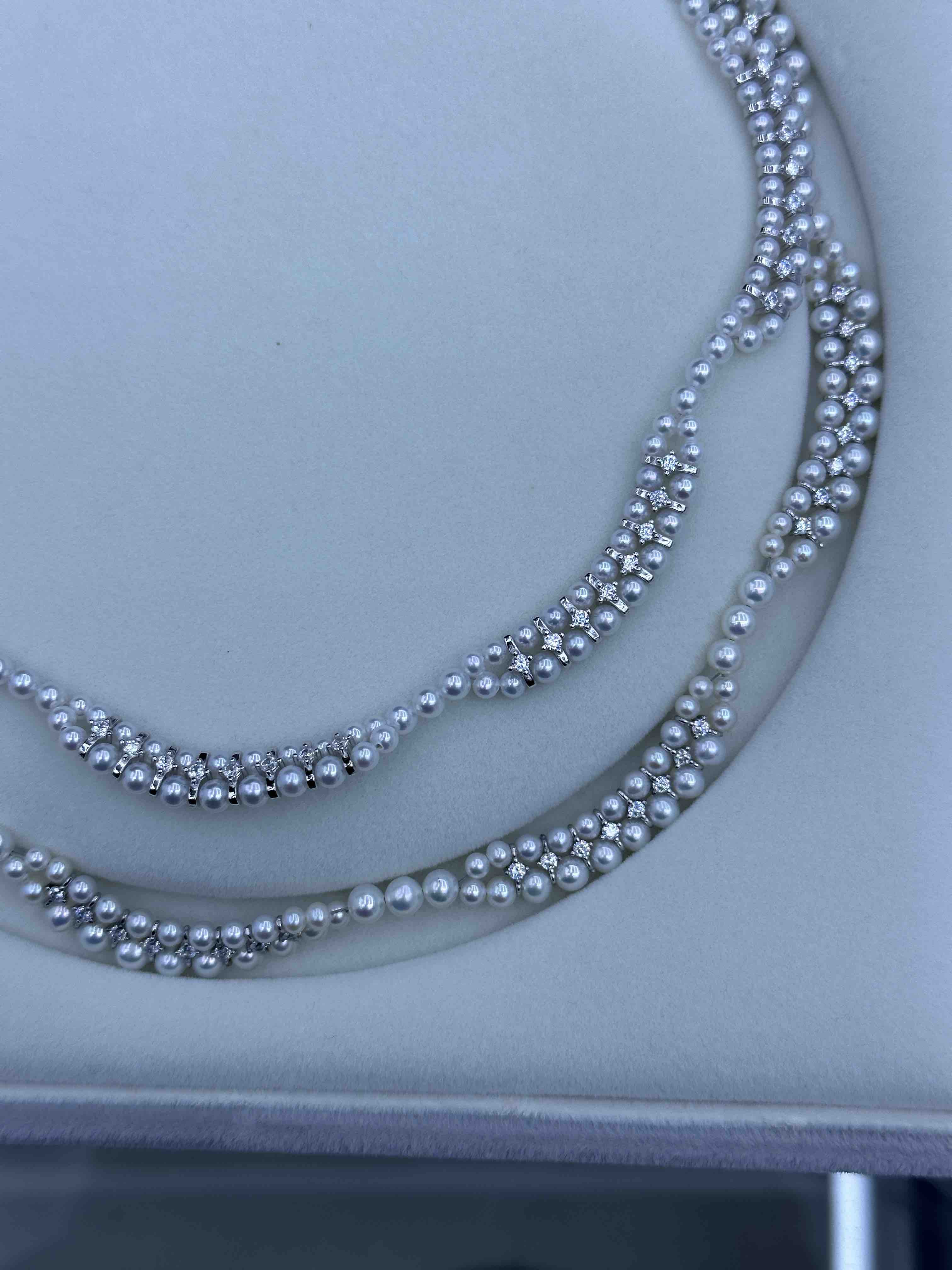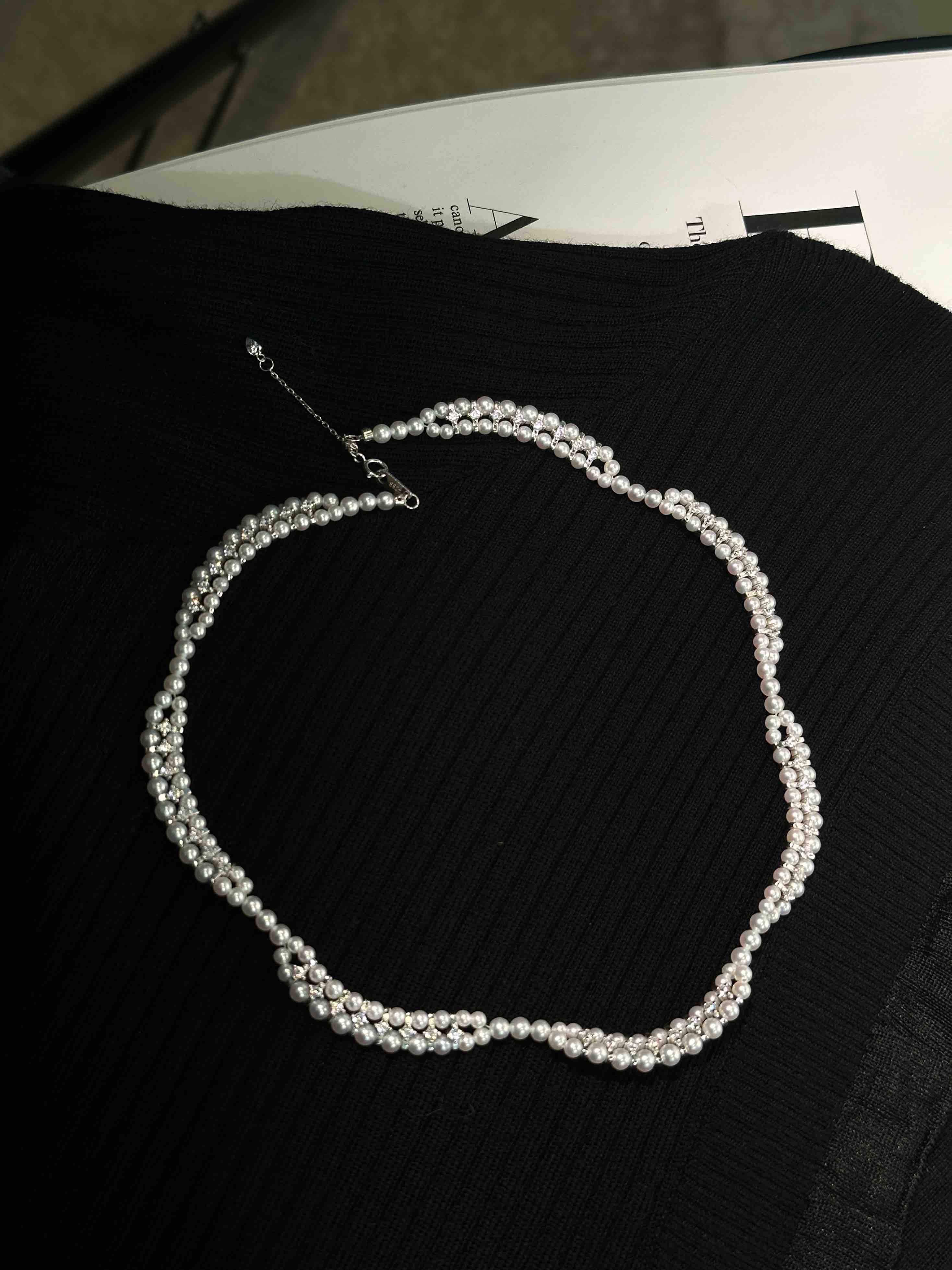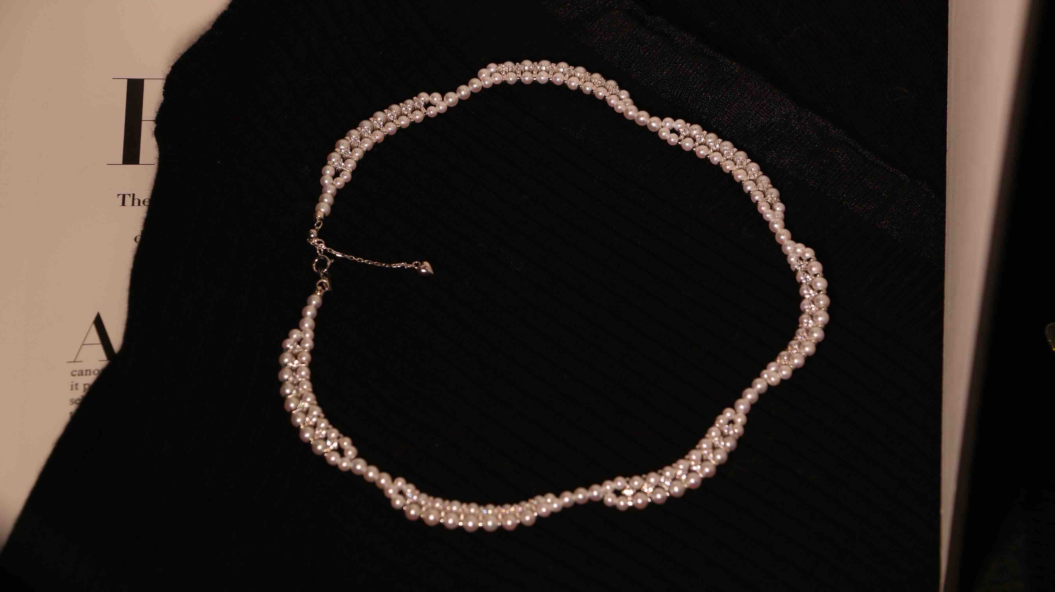 整条用了近200颗大大小小的极光淡水珍珠,总体3-5mm,很有珠宝感的一款。