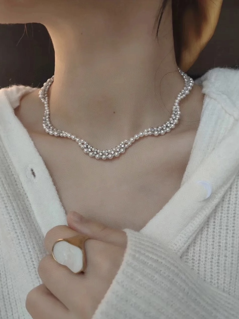 甄珠贝 考验手工师傅经验的一串花瓣项链 ji光淡水珍珠3-5mm 珠宝感的一款,上身很有立体感,特别适合喜欢精致品的姐妹们