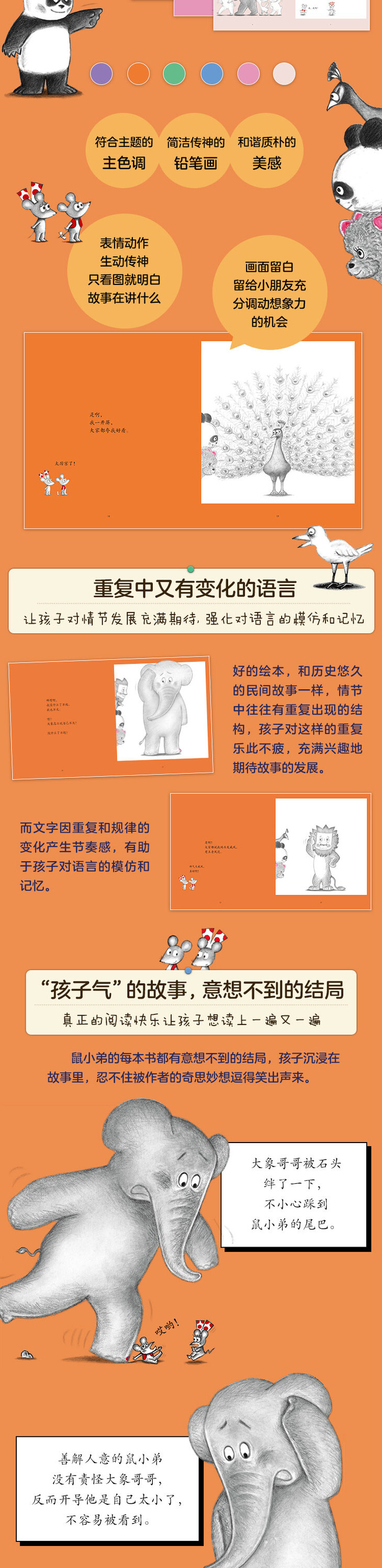 构思的巧妙,起、承、转、合的严谨,文图配合的默契,以及讲究的构图、色彩……当然,鼠小弟获得孩子们喜爱的重要的原因是它有趣,***有趣,真正有趣。——教育学博士 季颖