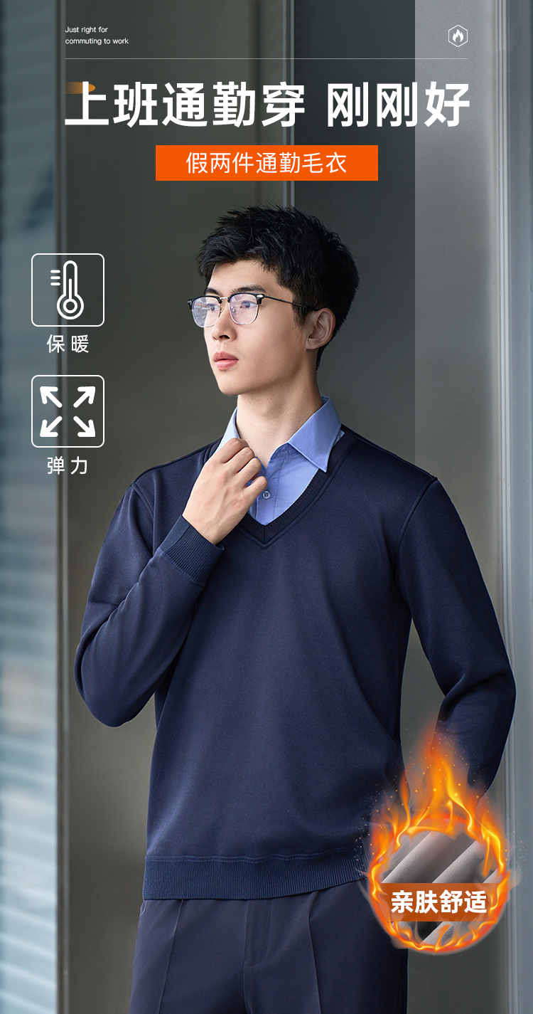 【通勤假两件毛衣】加绒保暖毛衫休闲弹力长袖打底衫MZ402