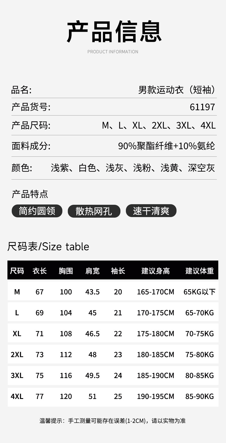 跃牌【PF系列】2025新款夏季冰丝短袖T恤男61197