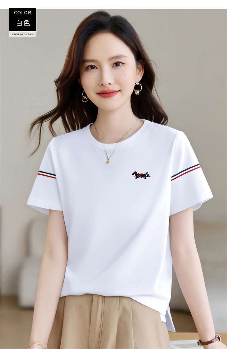 雀说圆领白色正肩短袖t恤新款夏季爆款女装衣服上衣半袖体恤衫AL20144