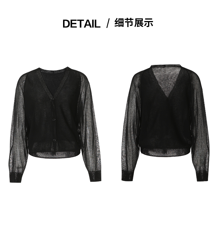 EITIE爱特爱高级感气质V领显瘦百搭针织开衫春季新款8101816