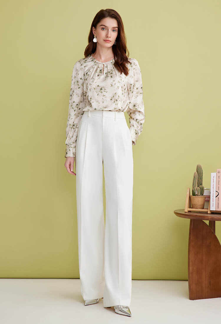 EITIE爱特爱利落通勤显瘦直筒高腰百搭休闲裤2025春季新款A2505507